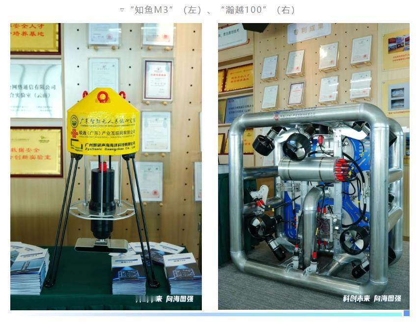 【养鱼也有机器人啦】广东智能无人系统研究院(南沙)发布海洋牧场鱼群声学监控系统“知鱼M3”和海洋牧场清洗巡检机器人“瀚越100”。 “知鱼M3”在水面上定位后漂浮,底下的探头360°旋转一圈,就能利用声波探测到半径30米内的球状水环境中有多少鱼,甚至还能看清鱼的大小,在10秒内形成立体的图像报告,实时告知用户当前的鱼群数据情况。 另一项产品“瀚越100”则面向网箱养殖快速发展对网衣清洗及环境检测需求,基于先进成熟的水下机器人系统技术及独特框架结构,具备浮游和爬行两种工作模式,配置基于压力、流量、靶距、扩张角等多参数优化组合的空化射流清洗系统,实现网衣附着物高效清理。