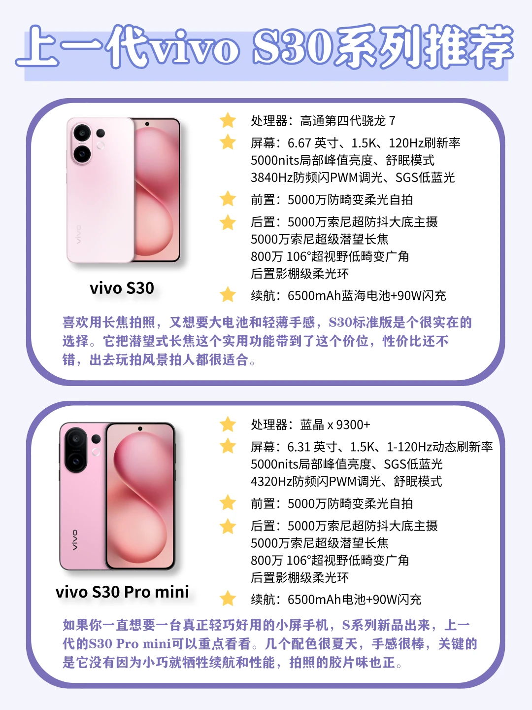 · 轻便党,够用就好:如果你就是想要一部轻巧的手机,对性能要求不高,那么 vivo S30 Pro mini 也是不错的选择。