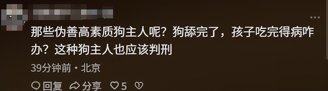 真无知!去人家店里面吃火锅,还纵容自己的狗上桌吃碗里的,女子还把视频拍下来发网上,语气骄傲的很。 还在边上说:“我的宝贝好厉害,吃了一盘子的羊肉卷,我该怎么夸它呢”,想得到网友的称赞,没想到,遭到网友的怒怼。 狗从伤害人到明目张胆去宾馆就餐,狗主人猖狂污染环境到何种程度?扰乱社会秩序,危害公共安全,应拘留,罚款! 相比在草地里面投放危险物质,这盘子可是给人用的,狗有没有病毒?人用不用盘子?是不是更严重危害到公共安全了?上一个案件被判了四年,这个案件起码也得十年以上吧。 危害公共安全罪,狗嘴里有各种细菌,让狗舔公共场所的餐具,如果餐具被其他食客使用,会危害到其他食客的身体健康,这就是蓄意投毒,必须重罚! 建议国家立法,对这种人狗同食的人,由卫生防疫部门列入黑名单,永久禁止进入公共餐饮地方,防止人畜传染病传播。