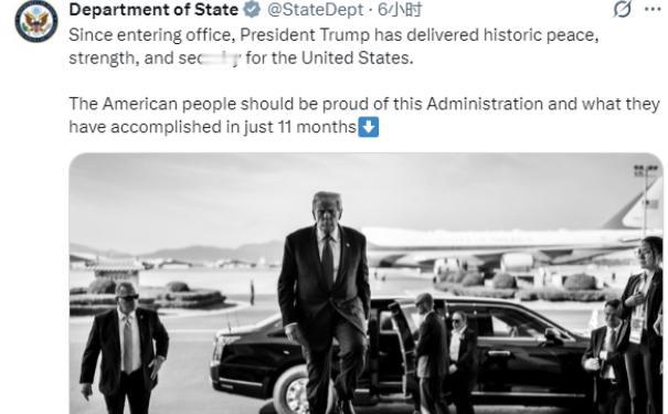 就在刚刚,美国国务院今天(美国时间12月18日)在社交媒体X上写道:“自上任以来,特朗普总统为美国带来了历史性的和平、实力与安全,美国人民应该为本届政府及其在短短 11 个月内取得的成就感到自豪”。 这大半年里美国在外交场上的动作,那真是肉眼可见的密集。 今年 8 月,阿拉斯加的埃尔门多夫 - 理查森联合基地迎来了特殊的客人,特朗普在这里与俄罗斯总统普京会面。 这场会面被外界解读为重建美俄战略稳定的重要一步要知道之前两国关系可是僵了好一阵子,能坐下来沟通本身就是大进展。 到了 10 月,埃及沙姆沙伊赫和平峰会现场,特朗普又和中东好几个国家的领导人围坐一圈,把加沙战争的停火方案聊得明明白白,还推动各方达成了临时人道主义援助通道的共识。 最让人关注的是 11 月白宫那场闭门会晤,特朗普和沙特王储穆罕默德一拍即合,不仅签了《美沙战略防务协议》,正式把沙特列为 “主要非北约盟友”,还敲定了史上最大规模军售。 更有意思的是 12月刚发布的新版《国家安全战略》,对华表述简直来了个 180 度大转弯。 特朗普将中国的定位改成了 “首要经济竞争者”,明显把经贸合作放到了更核心的位置,这变化可不是一般的大。 外交场上风生水起,科技和经济领域的布局更是狠活不断,“实力” 这俩字完全是用数据堆出来的。 特朗普政府对 AI 的重视,那真是到了 “举全国之力” 的地步,专门建设支持 AI 发展的基础设施,目前已经计划新建 5 个 AI 数据中心,加上现有布局,总容量将达到近 7000 兆瓦。 在11月的时候,特朗普还拉上谷歌、微软这些科技巨头组队,目标就是在 2026 年前拿下 AI 领域的全球领先地位,这阵仗堪比当年的曼哈顿计划。 政策上更是直接松绑,近期刚出台的 AI 监管 “单一规则”,把原来分散在各州、各部门的监管权全收归联邦,企业不用再应付层层审批,创新效率直接拉满。 能源领域同样捷报频传,通过放宽环保监管、重新开放 6 亿多英亩近海联邦水域等政策,美国原油产量稳定在 1350 万桶 / 日的历史性高位。 虽然钻井数量只有 488 台,但得益于第四代开采技术,原油净进口量从 752.2 万桶 / 日降至 229.6 万桶 / 日,朝着能源独立的目标稳步迈进。 国内安全方面的变化,边境地区的民众感受最真切。 特朗普政府一上台就废除了拜登时期的 “零门槛庇护” 政策,在西南边境加派了 1.2 万名国民警卫队和 3000 名联邦执法人员,还重启了 “留在墨西哥” 政策,要求非法移民在境外等待审理。 效果那是立竿见影:今年 1 月西南边境的非法入境记录还有 61447 人,到 2 月直接掉到 28654 人,一个月就降了 80%。 北部边境也没落下,非法入境拦截数较去年同期下降 72%,其中斯旺顿辖区的降幅更是达到 90%,边境管控的力度直接拉满。 移民与海关执法局(ICE)的行动也更给力了,现在拘留中心关押了 45682 名非法移民,处于满负荷状态。 而那些之前被释放后 “失联” 的非法移民,现在 “已知脱逃者” 数量下降了 92%,零容忍政策的威慑力实实在在显现出来了。 现在 X 平台上,这条推文的讨论热度还在涨,已经有超过 50 万条转发和 200 万条评论了。 有德州边境的网友晒出街景照片,说 “以前街上总看到不明身份的人游荡,现在军警巡逻的频次多了,晚上出门遛弯都踏实”。 从外交舞台的纵横捭阖到科技经济的多点突破,再到国内安全的持续加固,特朗普在这 11 个月里的一系列举措,共同构成了美国国务院推文背后的具体注脚 每一项成就背后都有具体的数据和案例支撑,也难怪美国国务院会特意发推文 “炫耀”。 对于这件事,您有什么想说的吗?欢迎评论区留言讨论。