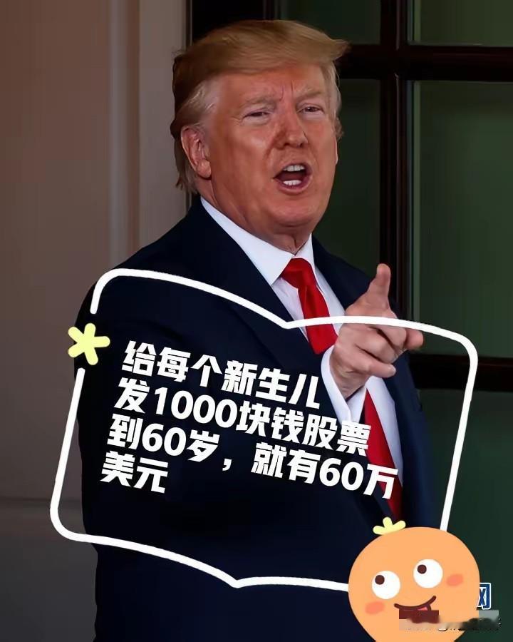 特朗普出绝招了,估计全球人都没人想过,他竟然要给美国的新生儿每人发1000美元的股票,他这个做法很新鲜,也很稀奇,但也不失为一个好方法,我认为他这个方法绝对有效。 这个政策一抛出来,不少美国选民眼前一亮,尤其是刚结婚或计划生娃的年轻人。 要知道,现在美国养孩子的成本已经高到让人却步,美国农业部最新数据显示,中等收入家庭把一个孩子养到18岁,平均要花24.1万美元,教育和托儿费用占比接近18%,比十几年前涨了快三成。 俄亥俄州的单亲妈妈萨拉对此深有感触,她月薪3000美元,光2岁女儿的托管费每月就占1500,“看到特朗普的提议时,我确实心动过,哪怕只是1000美元,至少能给孩子攒点教育基金”。但冷静下来她又犯愁,自己连股票账户都没有,更不懂怎么操作,这笔钱会不会最后变成“纸上财富”。 特朗普敢提这个政策,显然摸准了选民的脉。2024年大选数据显示,年收入低于5万美元的选民中,有50%投了他,这些家庭正是育儿压力最大的群体。 他试图用“股票福利”打造普惠形象,但翻看他政府的其他政策,就会发现矛盾之处——此前他刚下令禁止非法移民子女参与联邦学前教育项目,还计划削减食品券、医疗补助等福利开支。一边给新生儿发股票,一边收紧低收入家庭的即时救助,这种“远水不解近渴”的操作,更像选举季的造势手段。 类似的儿童财富计划,英国早有尝试。2005年英国推出儿童信托基金,给新生儿发放250到500英镑启动资金,可后续数据让人失望,60%的家长从未给账户追加过资金,不少低收入家庭甚至不知道如何管理这笔投资。 美国的情况只会更复杂,当前标普500市盈率高达27,远超历史均值,高盛预测未来十年美股年化回报率可能只有3%,甚至有分析师警告会遭遇“失落的十年”。新生儿的股票要等18年才能动用,期间要经历多少市场波动?巴菲特都在疯狂套现股票,手握3252亿美元现金避险,普通家庭的孩子凭这1000美元股票,真能抵御通胀和市场风险吗? 更关键的是,股票账户的托管问题根本没说清。新生儿没有民事行为能力,账户必然由家长管理,但美国有多少低收入家长具备投资知识? 大概率要委托金融机构托管,而这些机构会不会收取高额管理费,最后把收益蚕食殆尽?再看看特朗普政府的作风,马斯克作为他的巨额捐款人,既当政府高官又拿联邦合同,这种权钱交易已经不是秘密。这个股票计划会不会成为新的利益输送渠道,让金融巨头借着托管业务赚得盆满钵满,真不好说。 政策的初衷或许有可取之处,比如像俄罗斯、日本那样从小培养财商,但美国的现实条件并不支撑。俄罗斯把金融知识融入中小学课程,日本教孩子警惕借贷风险,这些配套措施美国完全没有。 特朗普只抛出“发股票”的噱头,却不提财商教育、托管监管,更不谈如何降低当下的育儿成本,这样的政策注定悬浮。对低收入家庭来说,他们更需要的是可即时兑现的育儿补贴、低价托管服务,而不是18年后才能兑现、还可能亏损的股票。 福利政策的核心是落地和公平,不是制造噱头。特朗普的新生儿股票计划,看似创新,实则回避了美国贫富差距、育儿成本高企的根本问题,更像用小额股票换取选票的政治操作。真正的民生保障,应该是让每个家庭都能轻松养娃,让每个孩子都能获得平等的成长机会,而不是把希望寄托在波动不定的股市上。 各位读者你们怎么看?欢迎在评论区讨论。