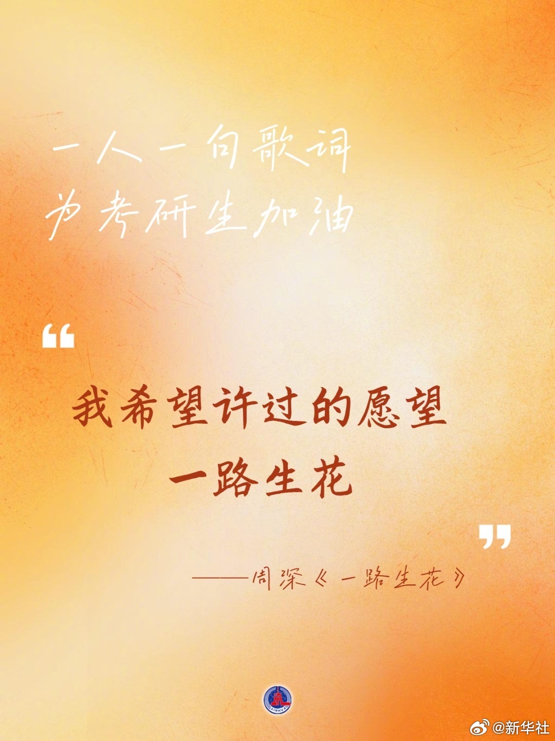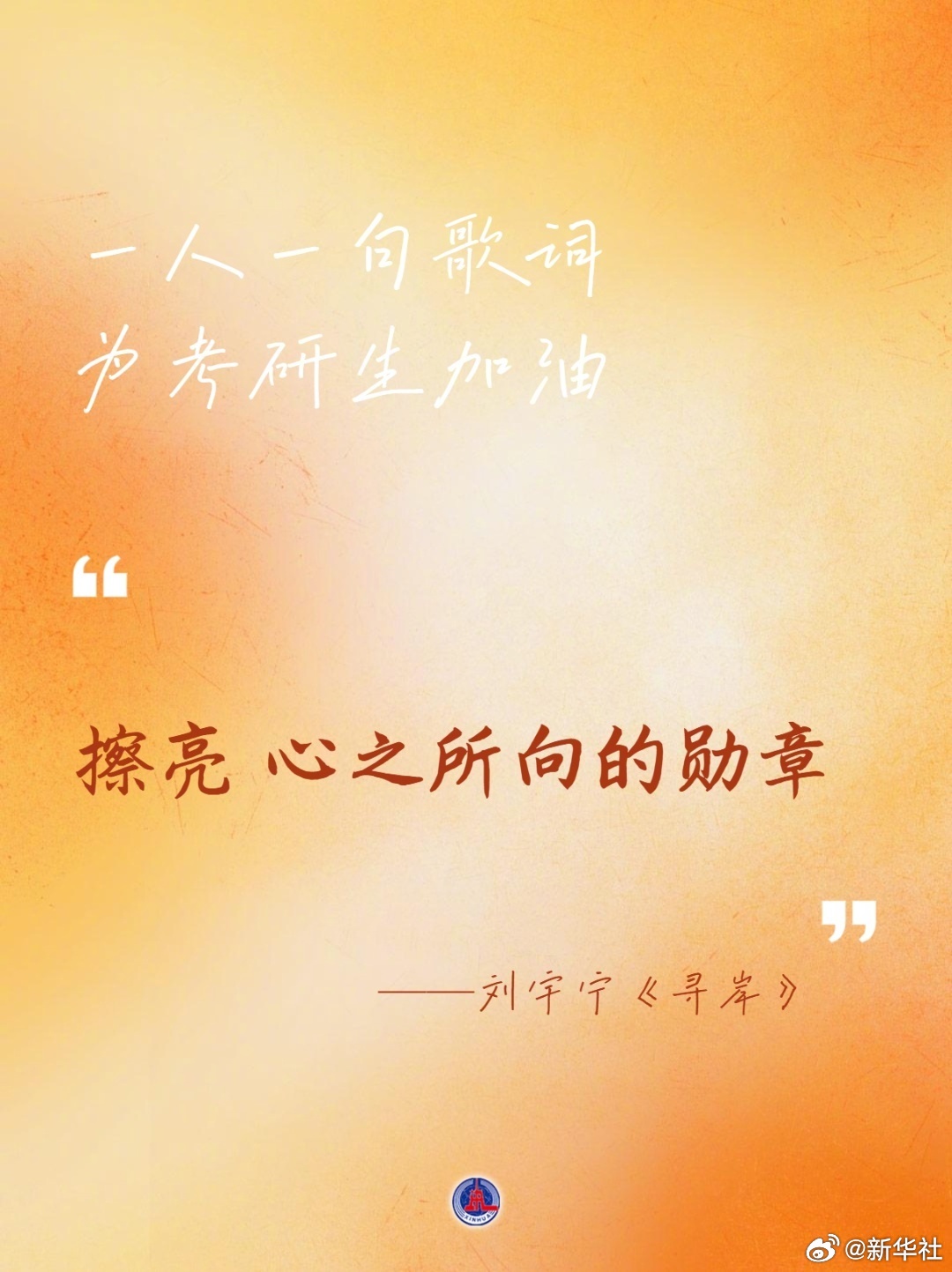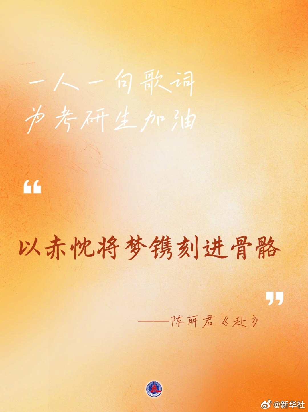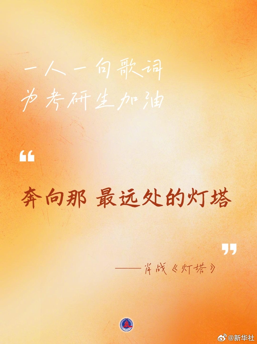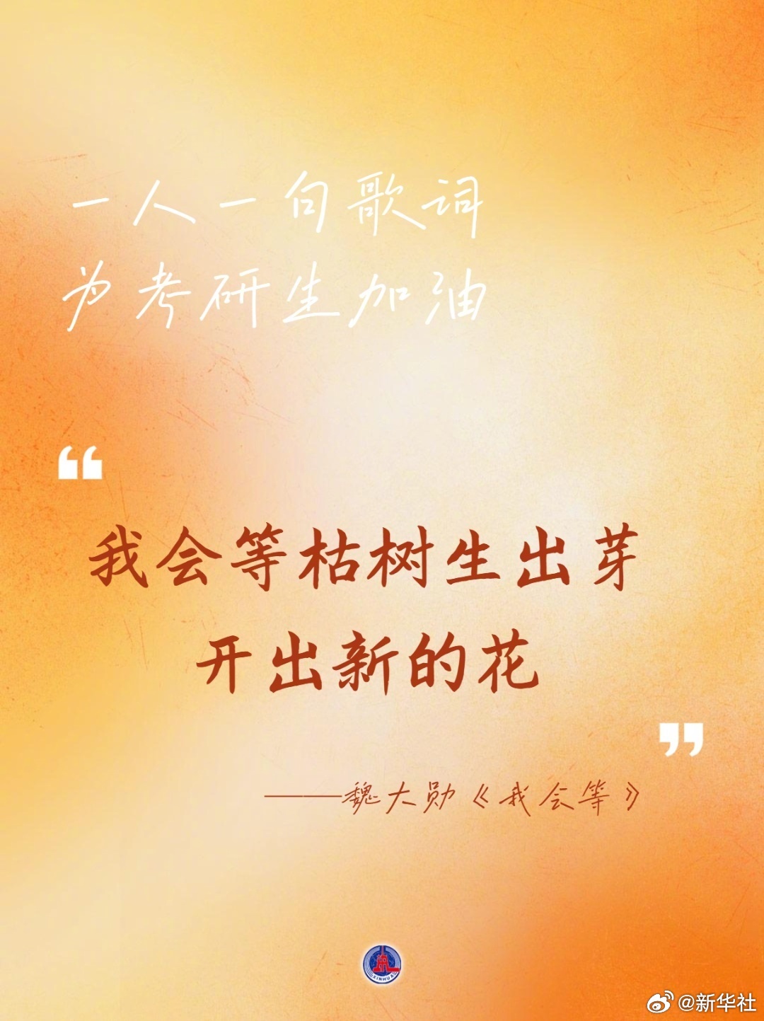 【以歌之名!#一人一句歌词为考研生加油#】明天就要考研了,一路走来,坚持到底,就是胜利。让我们一起在等的歌词里,感受前进的力量。如果用一句歌词祝福考生,你会选哪一句?