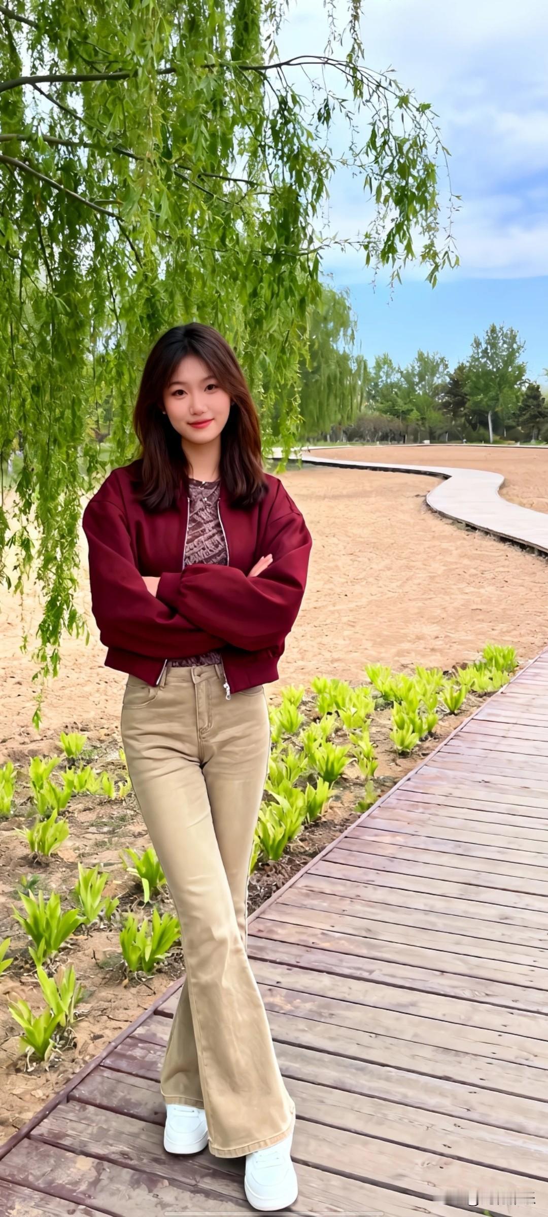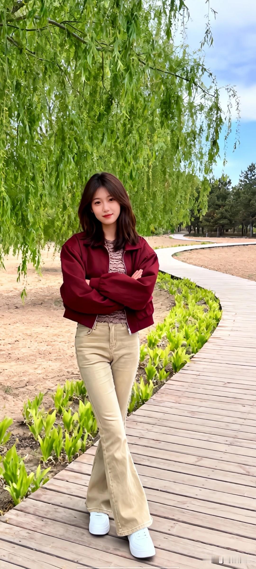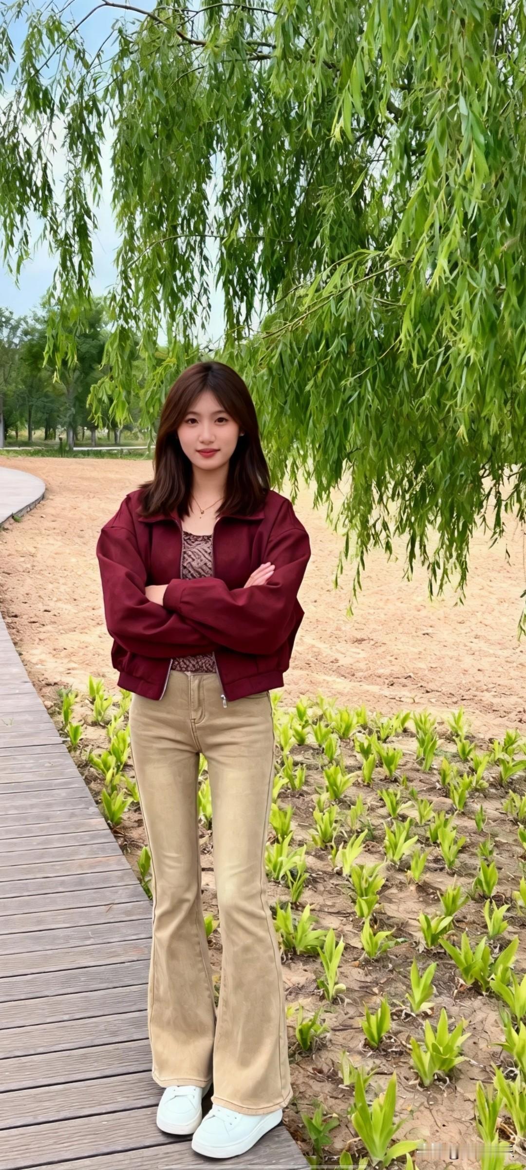 绿柳拂面春风里,笑语盈盈意自闲。