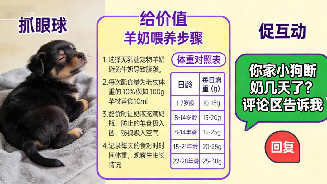 刚刚@心如止水 问,如何提高内容质量,刚好结合你账号的情况,那我就给简单解答下,直接就能用。 首先要明白的一点是提高内容质量的根本是针对粉丝的需求给出价值。 这个价值不是所谓写的好,拍的好,而是让用户感觉到这个东西对我有用。 让他看了能够引起共鸣,这是好内容的根本,也就是所谓高质量内容的根本。 针对目前账号内容领域有点多,同时视频并没有看到什么有价值的点,更关键的是没有互动。 我简单的拿一个领域进行分析,比如现在账号想定位宠物领域,我刚刚看了有小狗的视频,很可爱。 那么就要专注提供宠物饲养的痛点,比如,断奶怎么办,怎么预防生病,如何进行训练。 根本目的只有一个就是让粉丝觉得,关注你能够持续拿到相关的价值。 选题上尽量不要太大,最好就是粉丝常遇到的问题或者关心的点。 比如你这个内容,新生的幼犬被母狗强行断奶,饥饿中入睡。吸引力就不足。 换成幼犬出生26天被强行断奶怎么办?这样喂奶不生病。 是不是有养小狗的就会点进来看了?你又给了方法,自然就会关注你。 这是选题上,那么把内容上怎么去创作呢?其实视频和文章的逻辑是一样的。 都是三段式,第一段是抓眼球,也就是把痛点拿出来,文章是需要写,视频直接展示。 小狗蜷缩在一角,饿的发抖,或者是到处爬,找奶喝,类似的都行。 第二段是给价值,比如应该怎么喂奶,不要给牛奶,给羊奶,因为牛奶小狗喝了容易拉肚子。 再比如如何根据体重去衡量喂多少奶,这都是价值点,可以一个,可以两个都行,不要太多。 因为第二段是核心内容,所以内容要长一些,在其中还可以加上细节,比如数据,比如案例。 同时一定要注意口语化表达,否则大家看不懂。 第三段就是促互动,目的是什么?让粉丝觉得,你的确很懂,看你的内容很值。 最后就可以说,你有没有养宠物,这些方法记下来,到时候可以直接用,收藏起来别弄丢了。 所以想提高内容质量并没有多难,只要让粉丝拿到他们想要的,让每一个内容都有核心的价值点。 这个价值点可以是一个方法,一个技巧,甚至于一个观念,让粉丝产生了共鸣,内容质量自然就提高了。 平台也会推荐,@心如止水你可以先拿小狗的内容试试,你说对不?