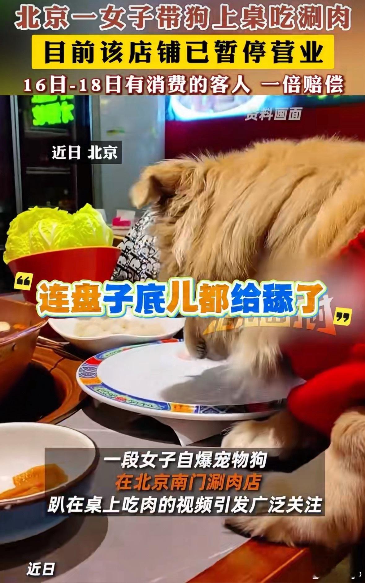 北京一女子带狗上桌吃涮肉舔盘子问题来了:上海小便尿进火锅的俩未成年人都拘了。这带狗上桌舔盘子的大人还逍遥法外?