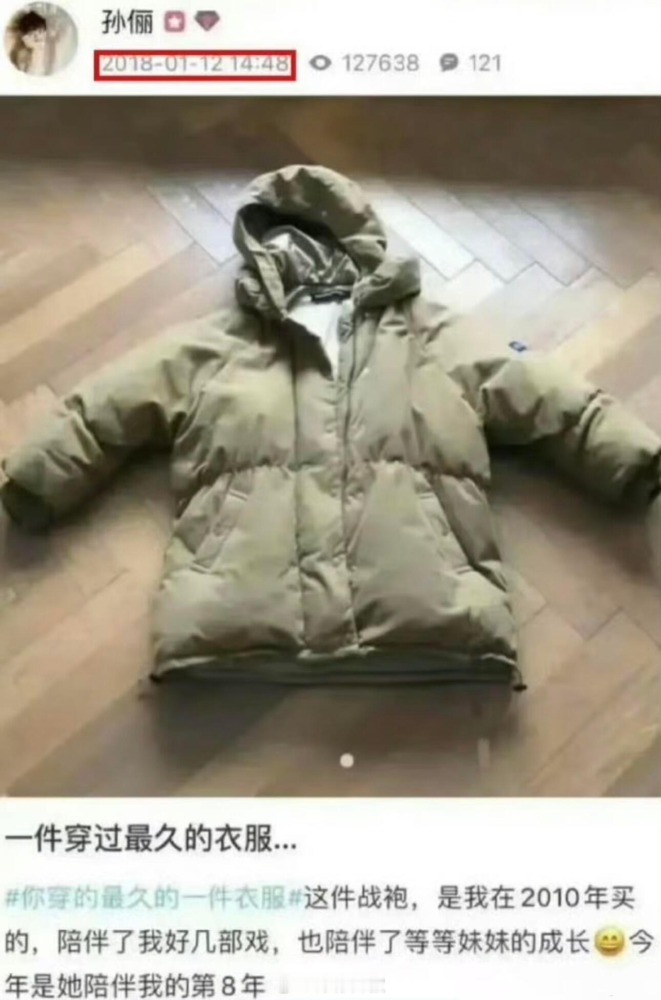 孙俪一件羽绒服穿了15年孙俪一件羽绒服穿15年,这年限都快赶上我的年纪了!这件“功勋战袍”陪她闯过无数剧组寒冬,见证一部部大爆剧诞生,早就不是件衣服,是藏满故事的老伙计。比起快时尚,这份长情真的好动人~