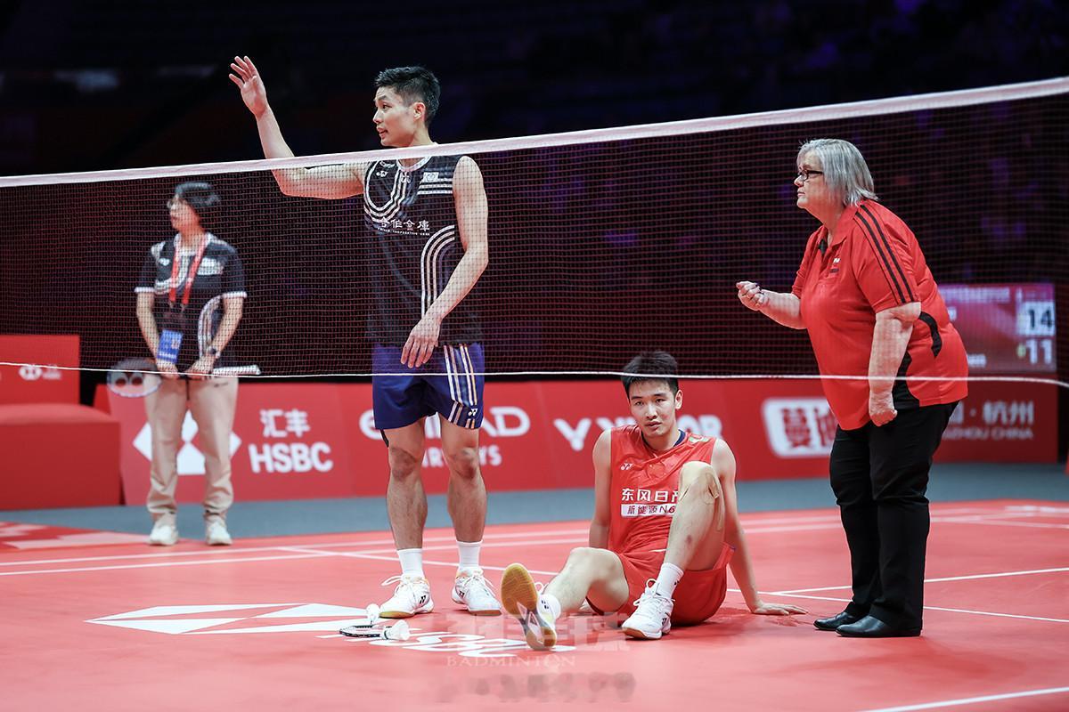 2025年世界羽联年终总决赛 国羽率先锁定总决赛五个四强席位,李诗沣受伤坐轮椅离场2025年世界羽联世界巡回赛总决赛小组赛接近尾声,在今天上午的比赛结束后,中国队已经锁定五个四强席位,出线悬念最后落在男双梁伟铿/王昶身上,他们将在今晚迎来出线关键仗。此外,在今天上午最后一场比赛里,国羽男单李诗沣受伤弃权,伤情受到关注。昨天的小组赛第二轮结束后,中国队男单石宇奇、女单王祉怡、女双谭宁/刘圣书、混双冯彦哲/黄东萍、蒋振邦/魏雅欣均已提前锁定出线席位,今天进行的是小组排位赛。今天早上最先进行的是女单B组韩悦和泰国名将拉差诺的比赛。由于同组的另一位泰国选手李美妙的退赛,该组成为王祉怡、韩悦、拉差诺三进二的争夺。王祉怡在前两天连续战胜韩悦和拉差诺,以两胜提前锁定小组第一,今天轮空。韩悦和拉差诺的这场比赛则直接决定第二个出线名额的归属,最终拉差诺以21比17、21比10获胜,以小组第二出线。另一个小组里,安洗瑩以2比1战胜山口茜,前者以小组第一出线,后者以小组第二出线。随后进行的混双B组头名之争里,中国队的冯彦哲/黄东萍以21比18、26比24力克马来西亚强档陈堂杰/杜依蔚,获得小组头名,对方以小组第二出线。混双A组今晚进行最后一轮,中国组合蒋振邦/魏雅欣已经提前锁定了小组第一,今晚将对垒泰国的德差波/苏皮萨拉。值得一提的是,两对国羽组合都以小组第一出线,他们不会在半决赛相遇。女双A组最后一轮,贾一凡/张殊贤以21比11、21比8横扫日本组合岩永玲/中西贵映,小组赛战绩两胜一负,最后因净胜局劣势排名小组第三,无缘出线。该组出线的是马来西亚的陈康乐/蒂娜和日本的福岛由纪/松本麻佑。另一对国羽女双谭宁/刘圣书将在已经出线的前提下迎战韩国的金慧贞/孔熙容。今天上午最后进行的是男单B组李诗沣和周天成的比赛,这场比赛无关出线,是小组第三的争夺。李诗沣在21比14先胜一局、第二局14比11领先时因脚踝受伤弃权,坐轮椅离场。离场时他简短地回应伤情,他表示自己感觉不是太严重,回去要好好冰敷处理并休息一段时间。男单A组比赛今晚进行,石宇奇与日本的奈良冈功大均已提前出线,今晚将争夺小组第一。至此,国羽在本届总决赛的出线最后悬念落在了男双梁伟铿/王昶身上。身处男双B组的“梁王”在首轮以1比2不敌印度的“黑塔”,在第二轮以2比0战胜马来西亚的“谢苏”,今晚将与印尼的菲克里/阿尔菲安交手;同组的另一场比赛在“谢苏”和“黑塔”之间展开。目前,男双B组的形势比较混乱,四对组合均有出线机会。