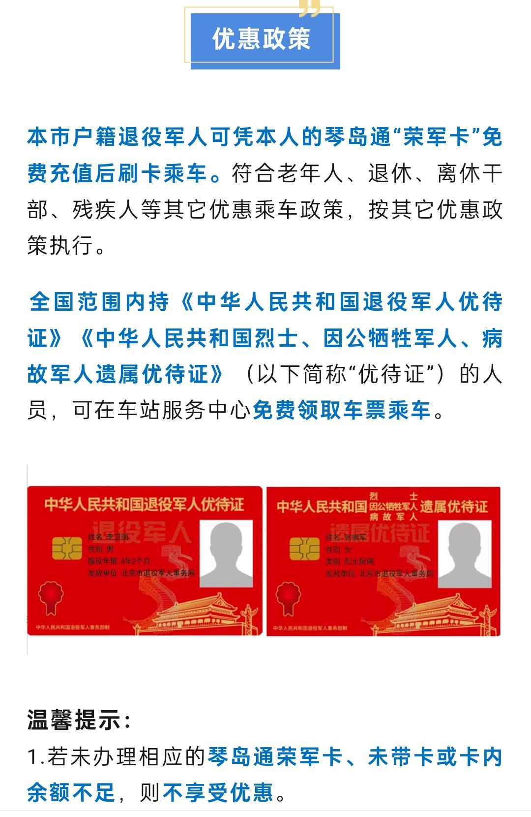 在青岛持有退伍军人优待证可免费乘坐公交地铁