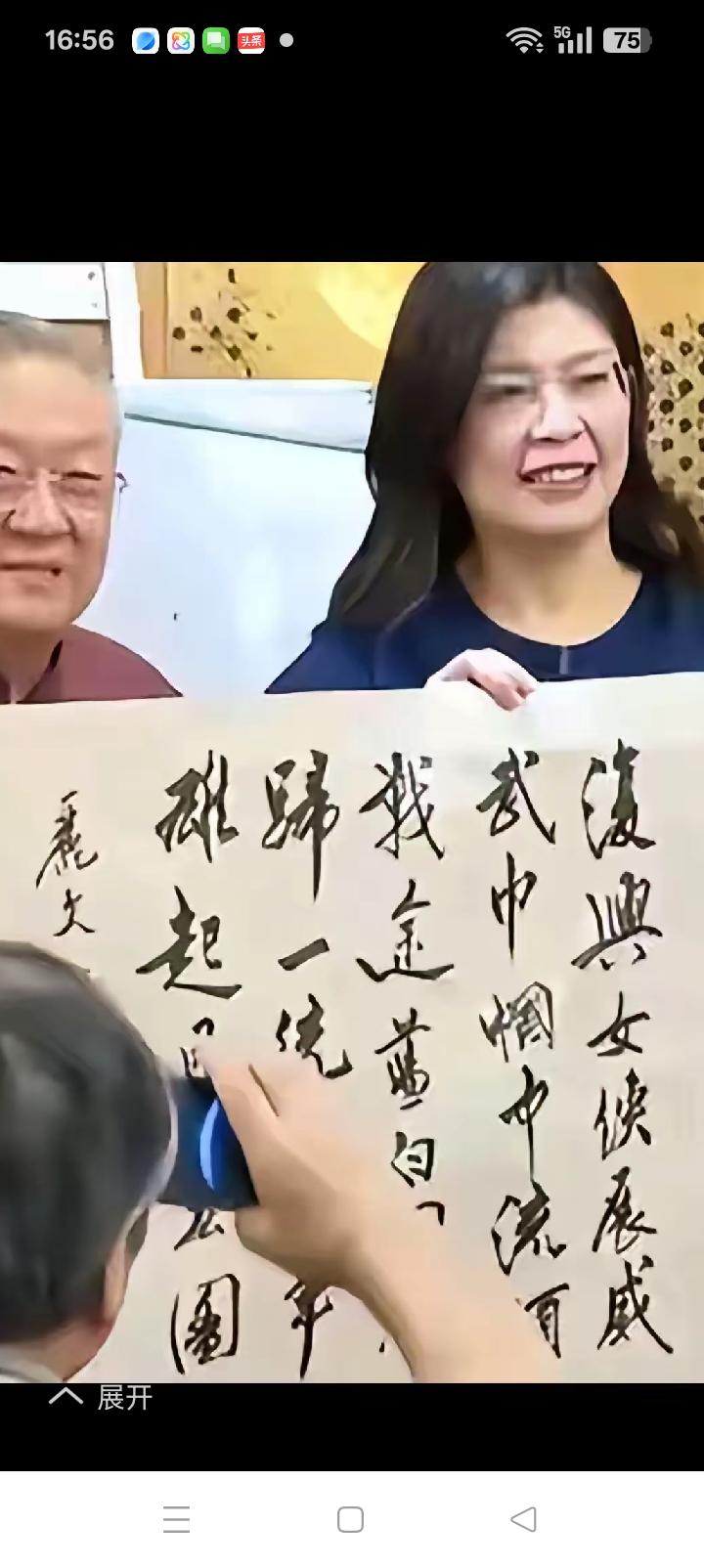 复兴女侠展威武,后面的看不清。 既然如此, 后面三句由我来填: 替父从军花木兰。 尔等若为五色石, 一块云彩也补天。 所谓巾帼英雄当学梁红玉,丽文书法切记华而不实。