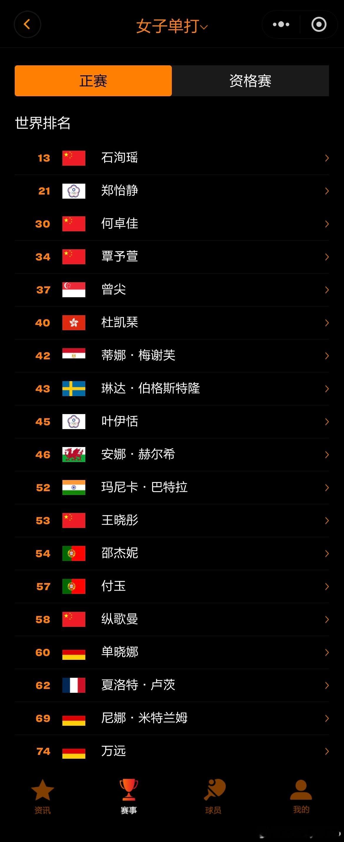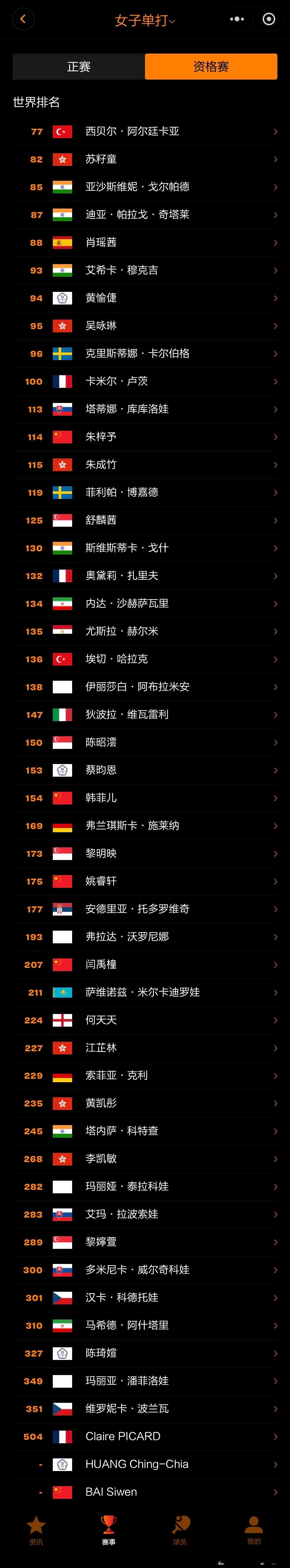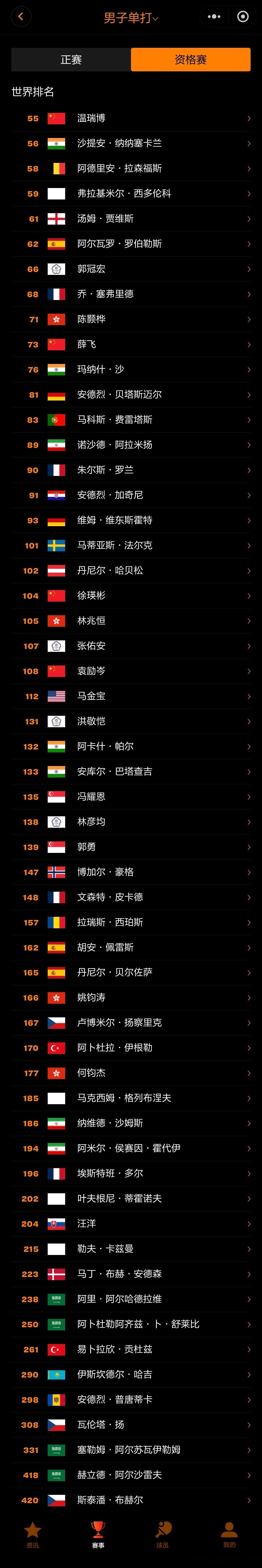 WTT常规挑战赛马斯喀特站2026单打参赛名单