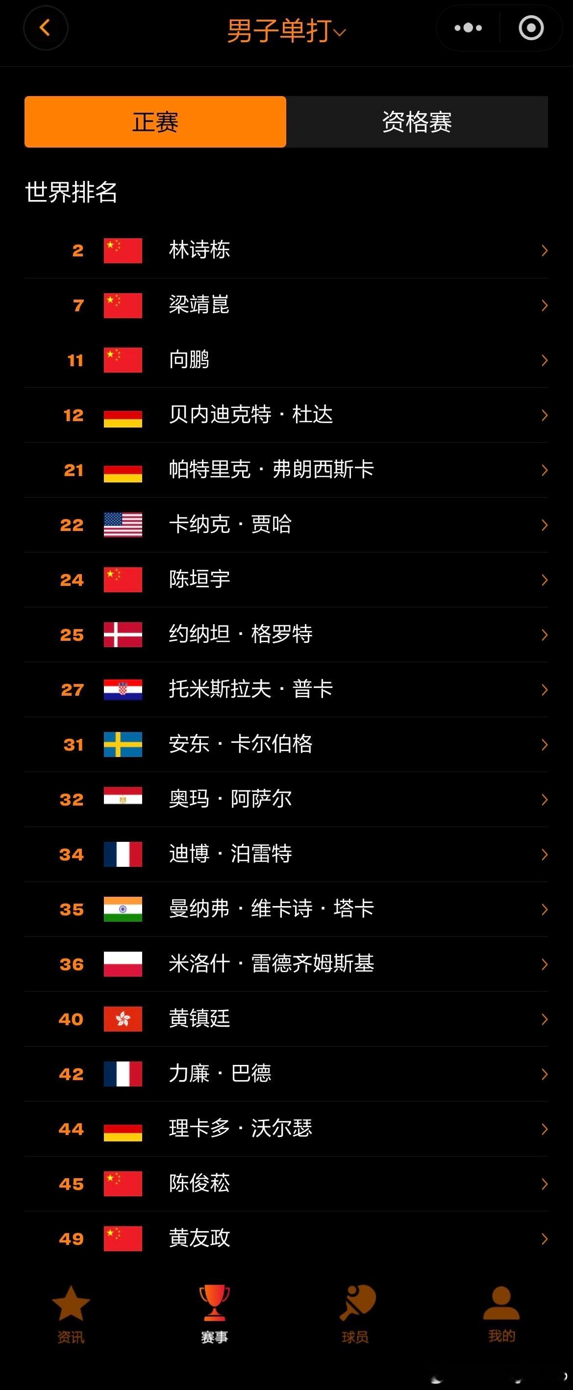 WTT常规挑战赛马斯喀特站2026单打报名Top5️⃣