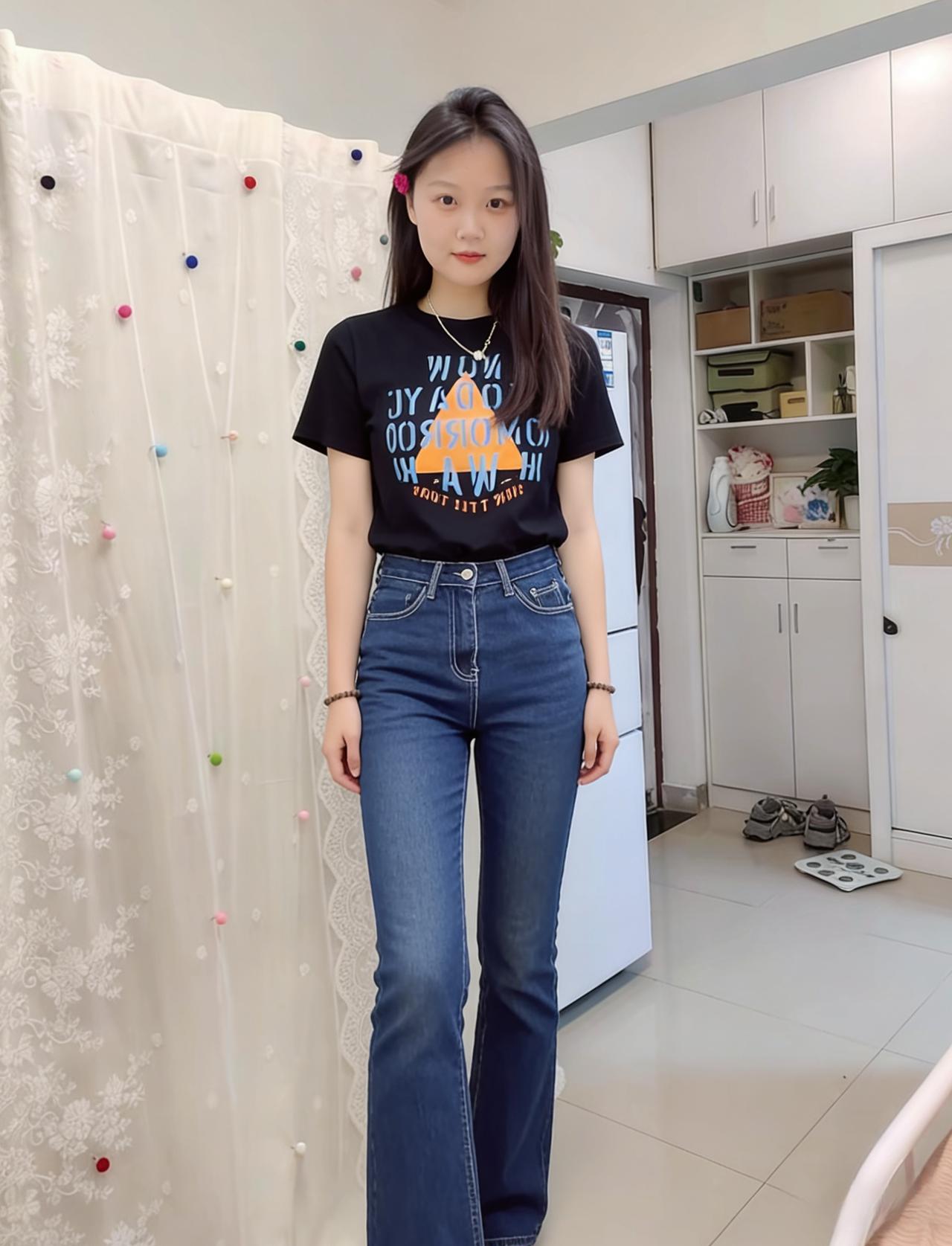 黑衫轻衬玉肌柔,青裤斜拖碧涧流。 发拂帘栊珠错落,眸含秋水月盈眸。 庭中琐屑皆成趣,室内清宁自可留。 一笑嫣然融俗虑,人间至味是清幽。