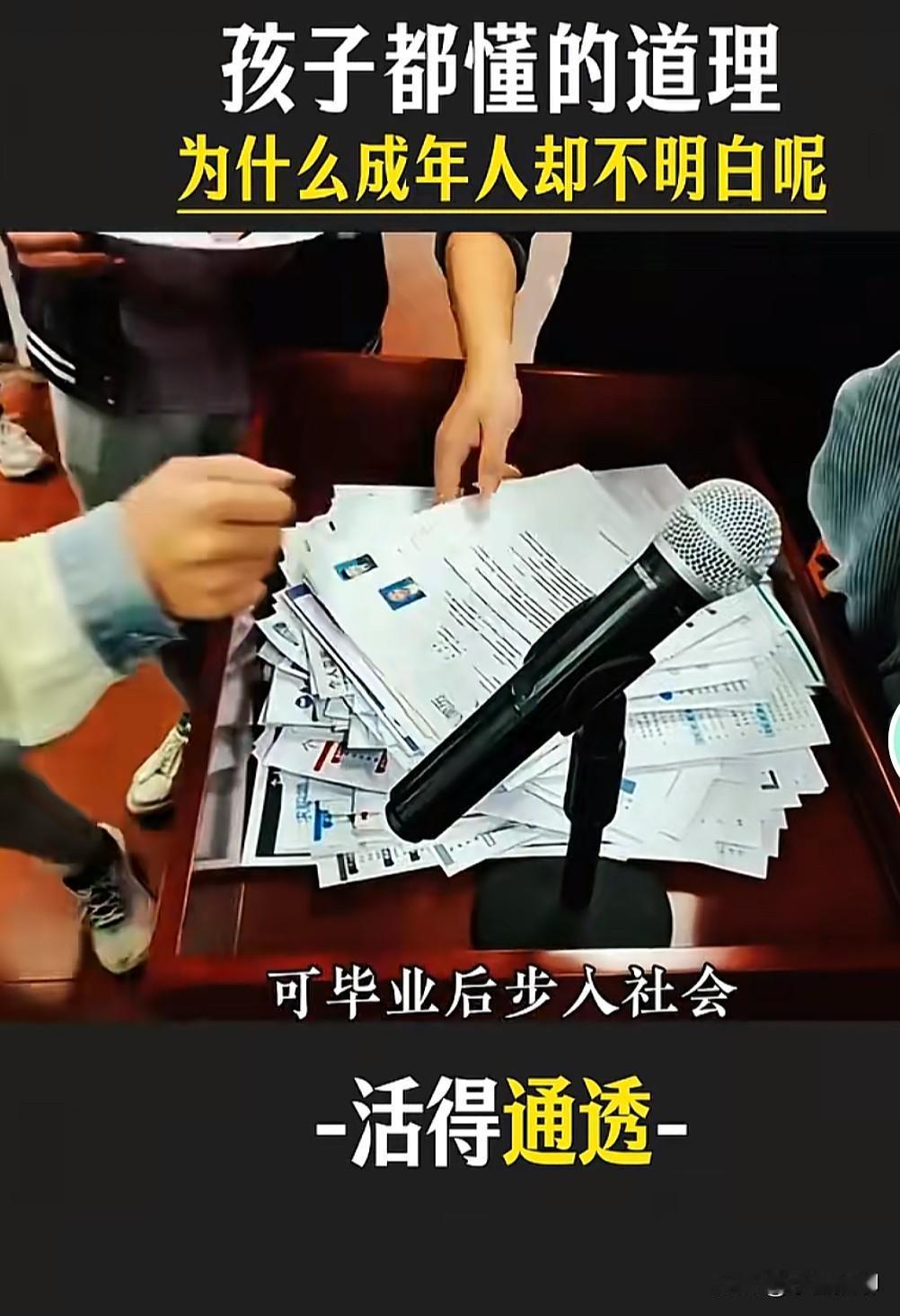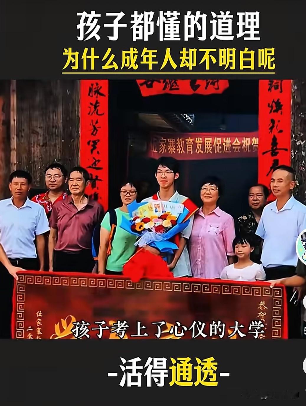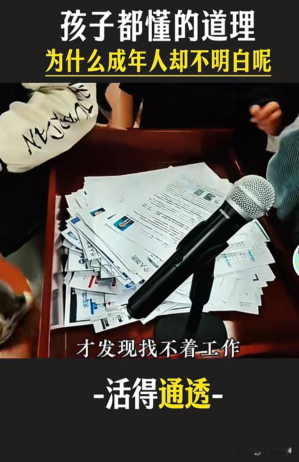 真的被现在的小孩戳醒了! 原来我们这些成年人,早就被世俗的条条框框捆住了,活得还不如孩子通透! 有网友分享,吃饭时不停给女儿夹菜,女儿却反问:“妈妈你怎么老爱伺候人?” 网友说这是照顾,女儿直接拆穿:“照顾是我不会做的事你教我做,伺候是我能做的事你还替我做!” 还有位家长给儿子讲笨鸟先飞,儿子却拿龟兔赛跑反问:“乌龟赢了又怎样?它不还是只慢吞吞的乌龟?外卖平台会找它送餐吗?兔子虽然输了比赛,却尝了萝卜、看了风景、睡了午觉,多自在!” 这话简直一针见血!我们从小被分数、排名绑架,长大了被工作、收入裹挟,从来没人问一句“你累不累”。 努力工作多年没被提拔,孩子考上好大学却难找工作,掏心掏肺维系的感情说散就散……我们总在追着世俗定义的“成功”跑,却忘了人生本来是用来看花怎么开、水怎么流,去遇见有趣的人和事的。 不是孩子活得太明白,是我们的思维早就被固化了!教育的本质从来不是逼孩子活成我们想要的样子,而是让他们成为自己。