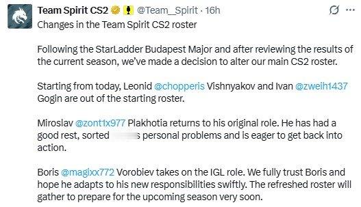 Spirit官方宣布下放chopper和zweih,而上海Major的两位夺冠功臣magixx和zont1x将正式回归首发阵容!此次双人阵容调整,源于战队下半赛季的低迷表现。此前Spirit用zweih替换magixx后曾收获佳绩,拿下了IEM科隆站冠军以及BLAST赏金赛 S2冠军。此外这也是chopper自2019年3月加盟Spirit以来,第二次被下放替补席,上次被下放也是因为在Major赛事表现不佳,接下来就看看magixx能否扛下指挥的重责大任,帮助donk在明年多拿几座冠军!绿龙阵容调整 CS2 CSGO