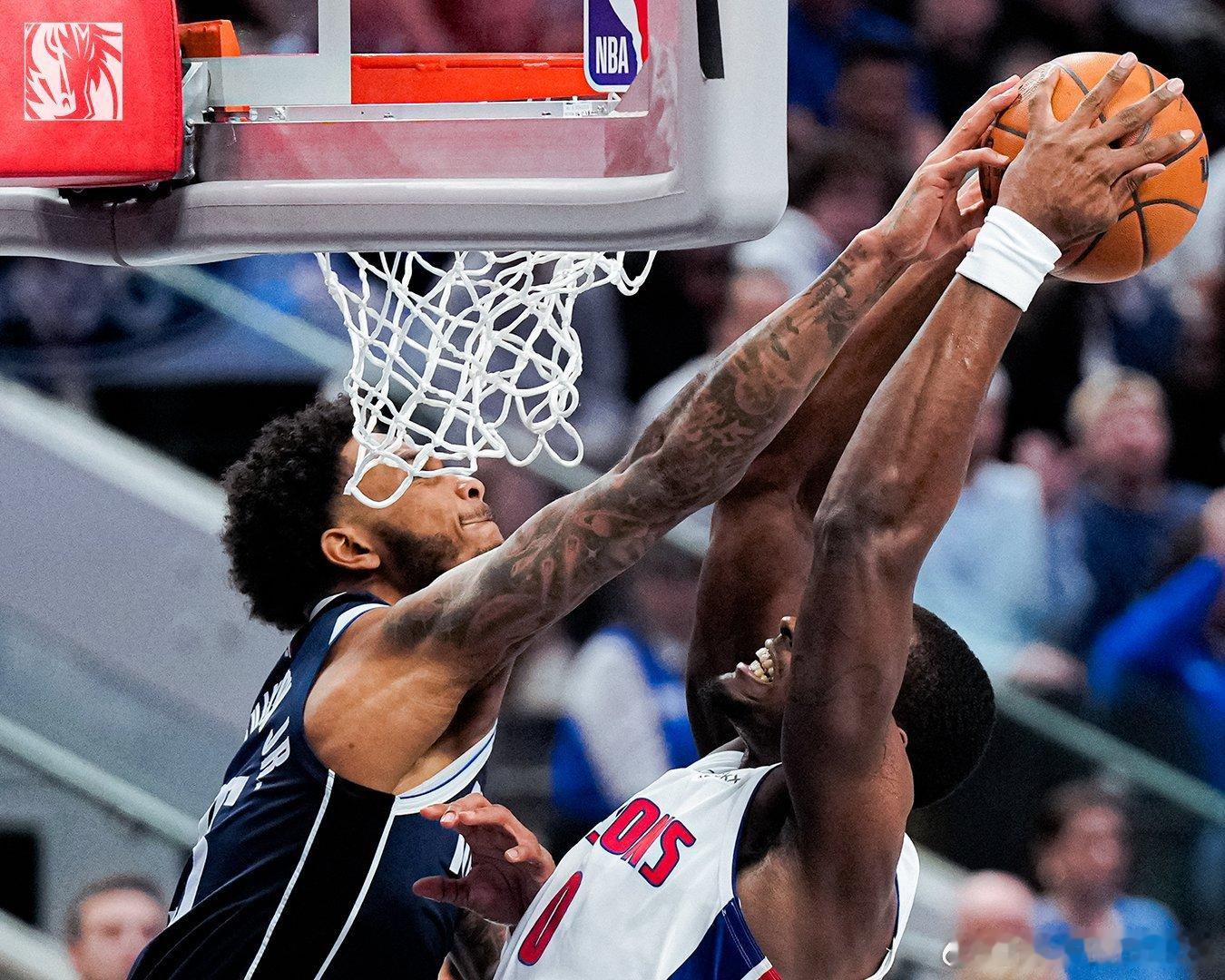 达拉斯禁飞区!在独行侠战胜活塞的比赛中,全队共送出15次封盖(图1少算了1次),有4名球员的封盖不少于3次,创造队史记录🚫具体数据为: 弗拉格3次,浓眉3次,加福德3次,PJ-华盛顿4次😤作为对比,活塞全队仅送出4次封盖,杜伦被封盖6次,斯图尔特被封盖3次活塞vs独行侠