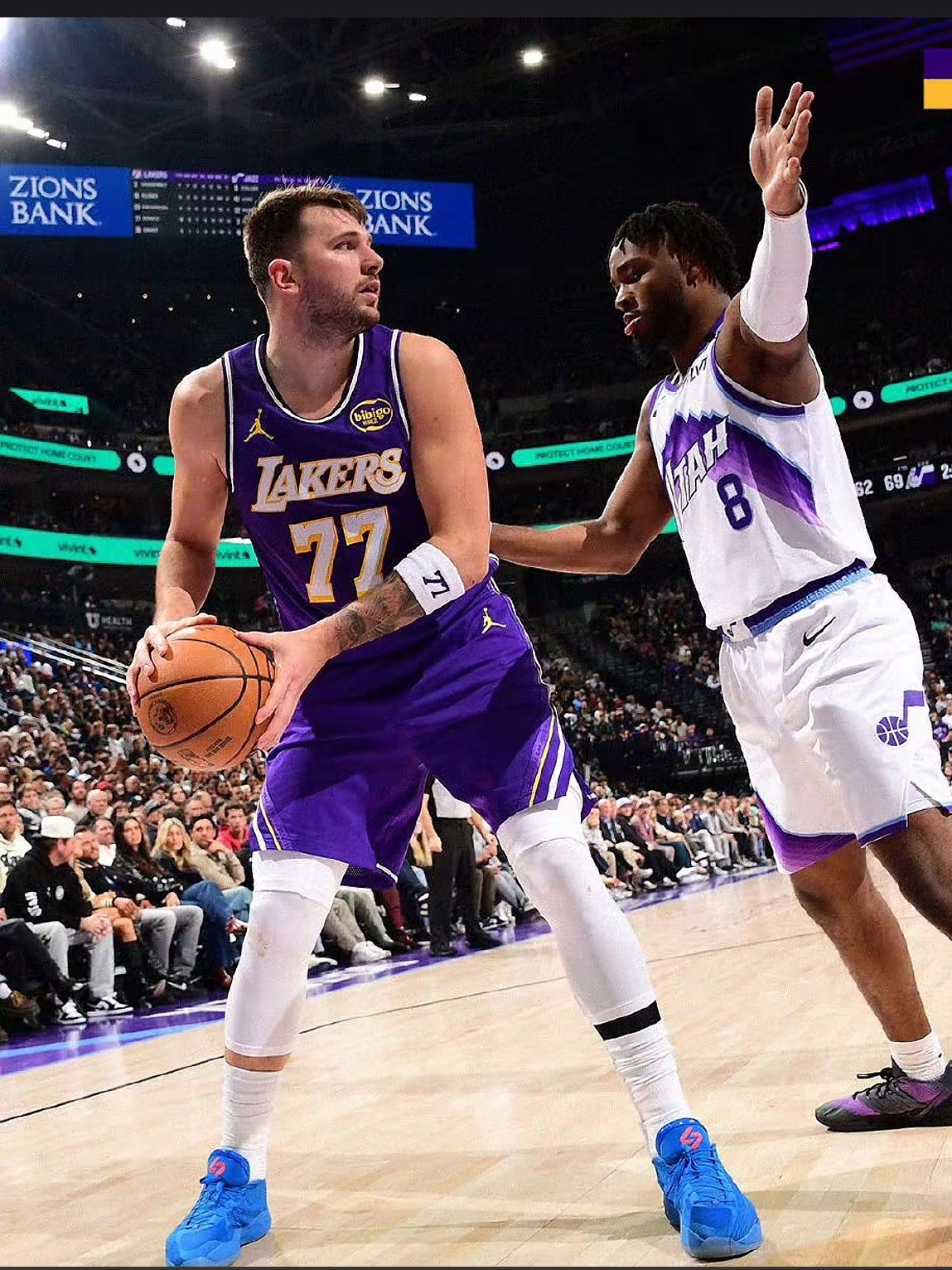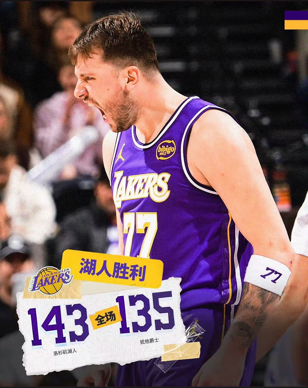 12月19日NBA常规赛,湖人143-135逆转爵士获2连胜,东契奇45+11+14超级三双,詹姆斯28+7+10。