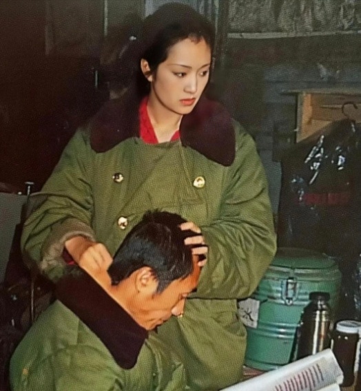一身军大衣的巩俐正在给张艺谋按摩!穿上军大衣的巩俐也难掩其娇美容颜