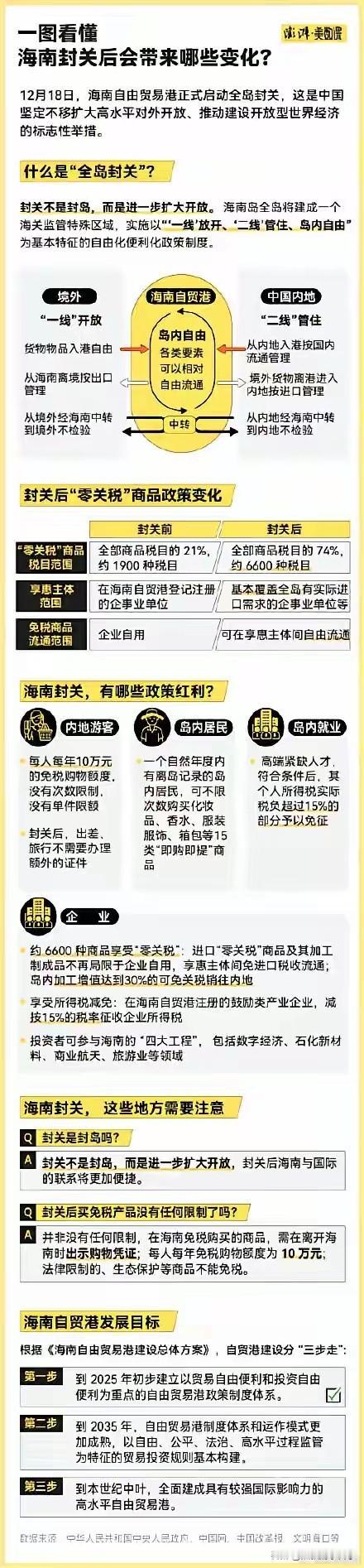 海南封岛是什么意思,和我们普通老百姓有什么关系? 一张图说明白,封岛不是为了“封”,而恰恰相反,是为了开放。 你就想象成他就是未来的新加坡,未来会取代新加坡,成为新的东亚中心。 第二,对我们国内其他省份的老百姓来说就是过去买东西,免税,额度10万一年。 第三,你看,苹果手机卖爆了!就是这个道理。