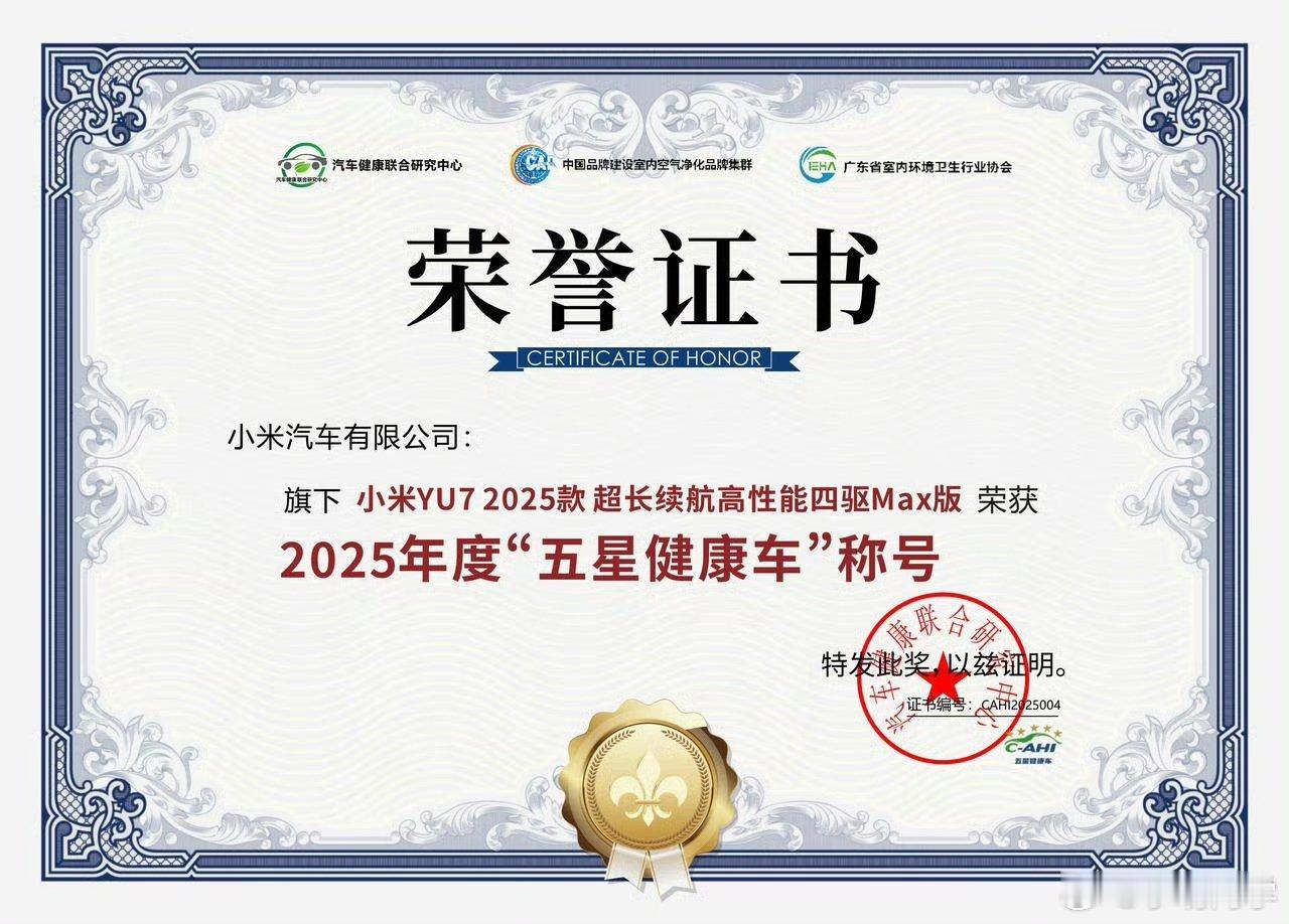 小米YU7获五星健康车称号 网上铺天盖地的吐槽,专业机构就是各种肯定和颁奖信舆论还是信检测机构呢?