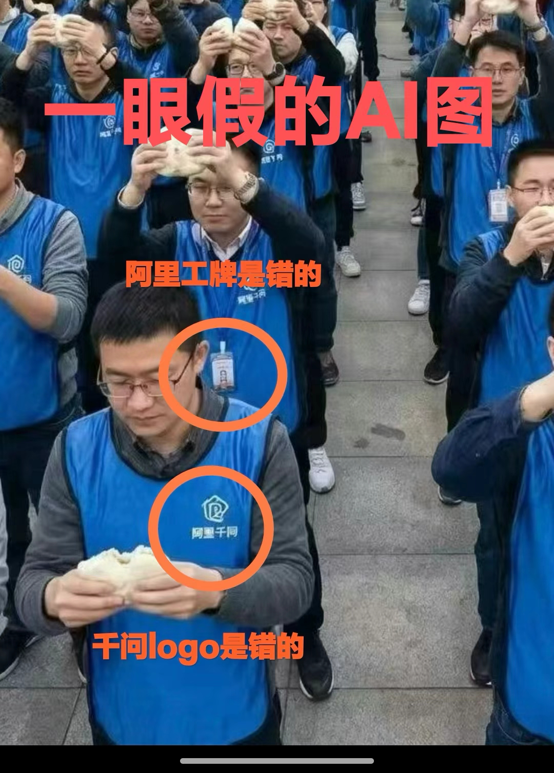 相关人士辟谣千问开全员会手撕豆包 网上传出疑似阿里千问员工聚集在广场上手举豆包,广场一侧有“干死豆包”标语。 阿里相关人士辟谣,表示此图是“假的”。
