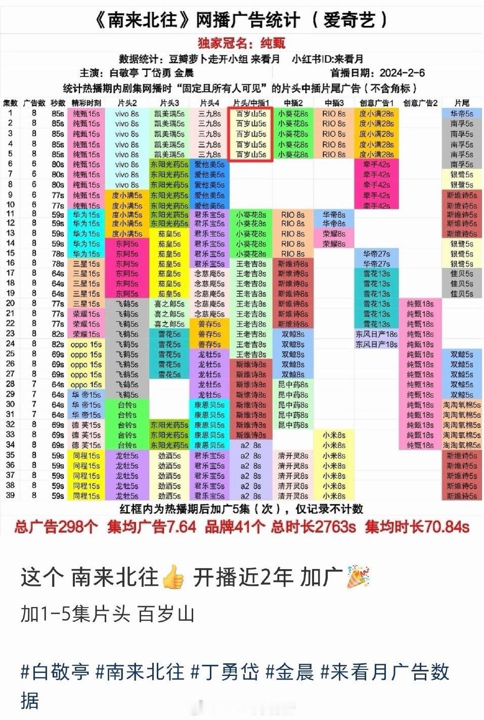 白敬亭国民级爆剧《南来北往》播出两年后加广,百岁山来了 现在南来北往集均9广了 招商史冠又在增加自己的记录。