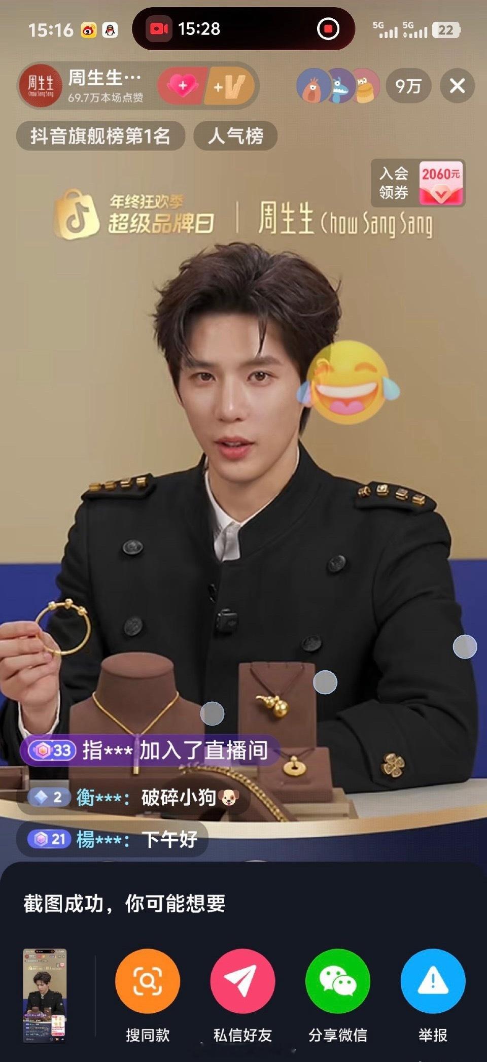 王安宇周生生直播15分钟9万人观看,串珠售罄,老王哥是真的好火吧