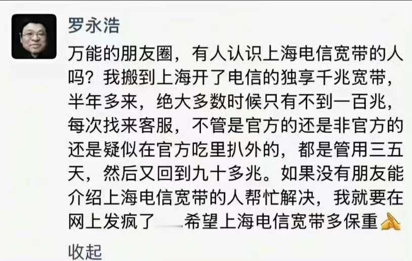 上海电信,现在慌的一匹,惹到罗永浩了罗永浩痛批电信宽带缩水