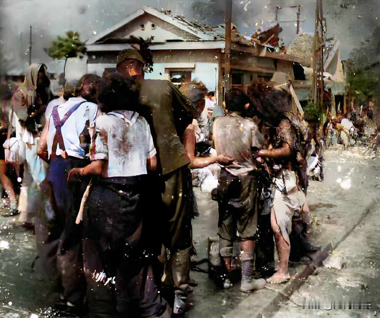 据说这是原子弹爆炸之后的画面,都说原子弹的威力特别的大,但是这些人还能够站在街面上,说明离爆炸的核心地还有一段的距离,毫无疑问,这些人应该是被吓坏了,也许他们从来都没有听到过这么大的爆炸声!