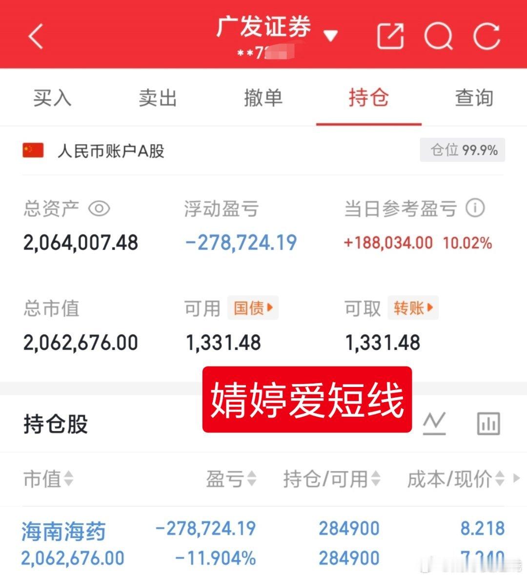 今天终于给力了一把,好久没下过早班了,继续坚守吧。30万本金实盘记录(第368天)目前资金:2064007.48元今日持有:海南海药 sz000566[股票]我会把每天实盘记录下来,我相信实盘肯定一直往前冲,希望各位股友支持婧婷!点赞富一生,评论888票票长虹!特别声明:这只是我个人的操作记录,不作为任何投资建议,更不是劝你们跟买!股市有风险,投资需谨慎!!!🙏🙏🙏股票上证指数a股炒股技巧