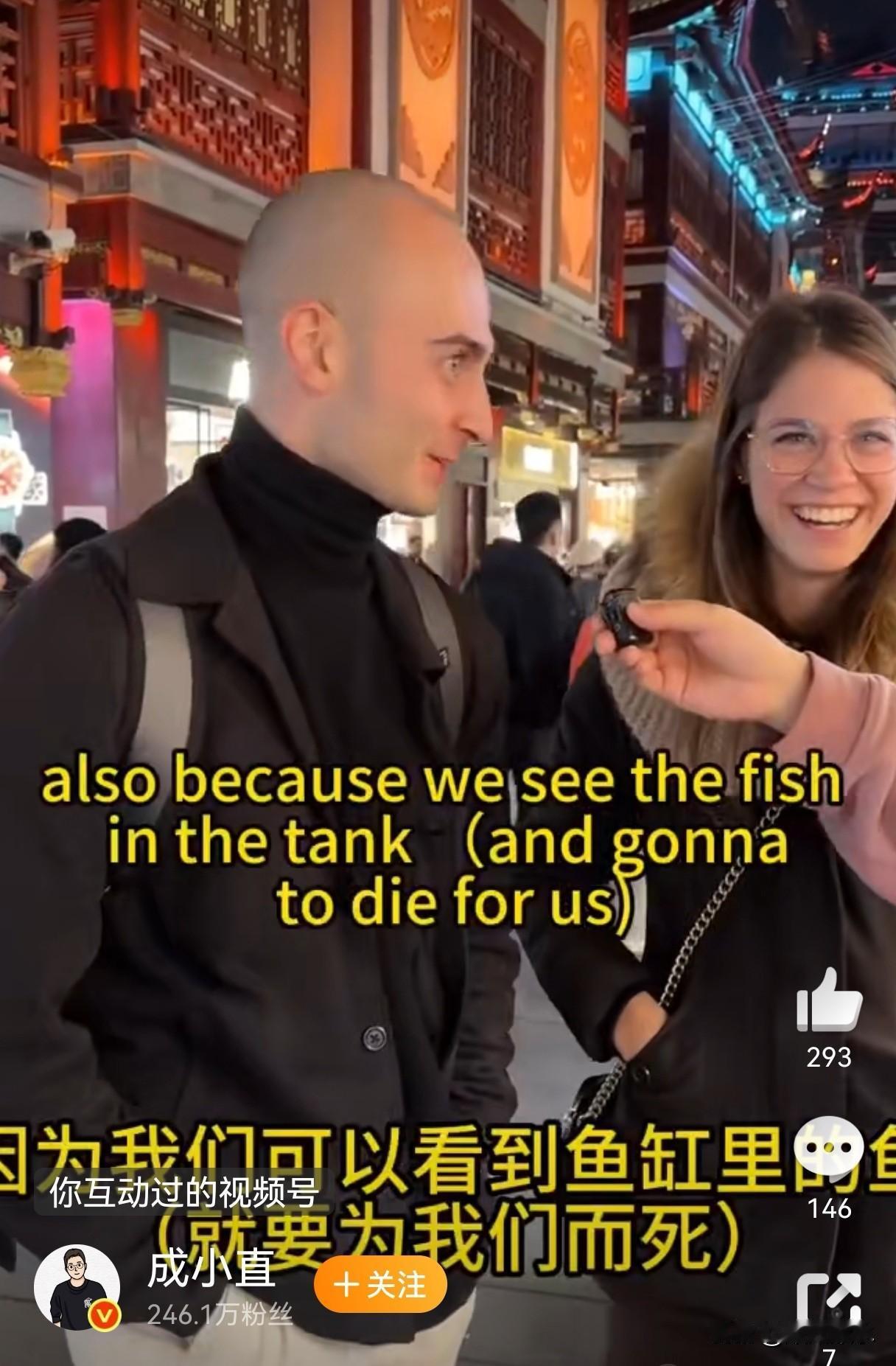意大利游客吐槽:中国说英语的人少,还不喜欢餐厅摆活鱼——觉得鱼是“为她们死的”,都不想吃了。 我就想问了,餐厅里的活鱼不杀怎么吃?难道意大利餐厅里的鱼都是自杀的! 中国并非英语普及国,没必要都说英语。活鱼摆桌也是展示,就是为了让顾客挑选新鲜的,意大利游客误读为“专为她们杀”,实则是文化上有差异。 跨文化沟通要懂得地方习俗——别用自己的习惯去评判别人。 旅行不是挑刺,是理解差异。尊重别人的“平常”,比抱怨更难得——包容,才是世界通用的语言!