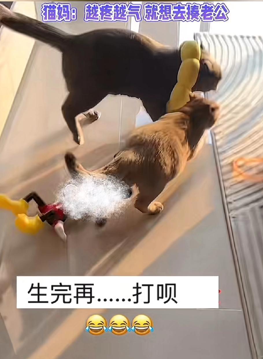 猫妈妈生小猫生了一半,后面还提溜着小猫就跑出去打猫爸爸,猫妈妈给猫爸爸一顿挠,看的主人都惊呆了。 连小猫都受不了生产之痛,还知道打猫爸爸,可见确实太痛了。 多少女人生的时候痛的恨不得揍老公一顿,生完之后就忘了,看着孩子可爱的模样甚至还想生下一个。😂😂
