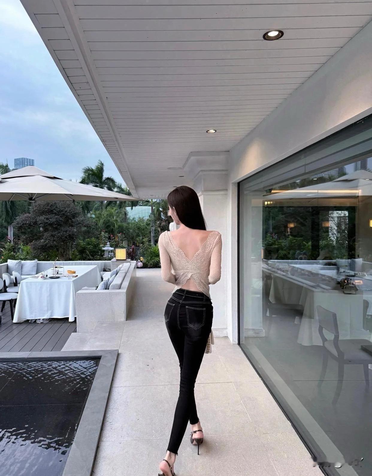 优雅后院漫步,蕾丝上衣与牛仔裤的完美搭配美少女美景分享 分享一张外出拍的最美的照片