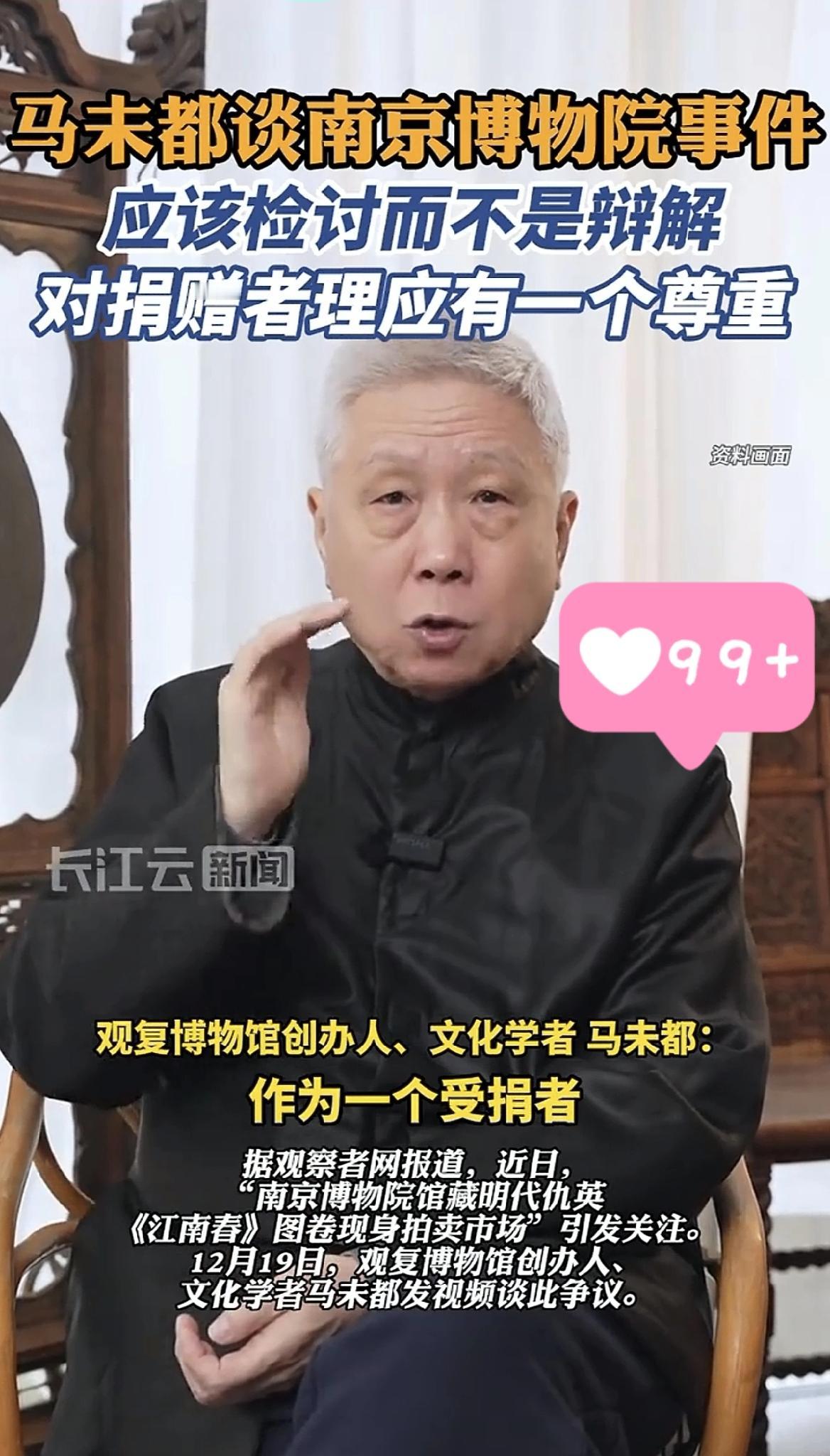 马未都这次直接把南京博物院怼上热搜! 起因是南博把捐赠的《江南春》古画定为“伪作”, 6800元就卖了,发票还只写“顾客”俩字! 马未都气得直拍桌子:“就算是假画也不能这么糟践!” 他戳破关键:捐赠者必须被尊重,藏品退出有严格流程,南博这操作明显违规! 更让人揪心的是,背后还有原院长姚迁护宝含冤而死的悲剧。 博物馆是守文化的,不是瞎折腾的!尊重捐赠者、守规矩就这么难?你们觉得南博该道歉吗?评论区聊聊!