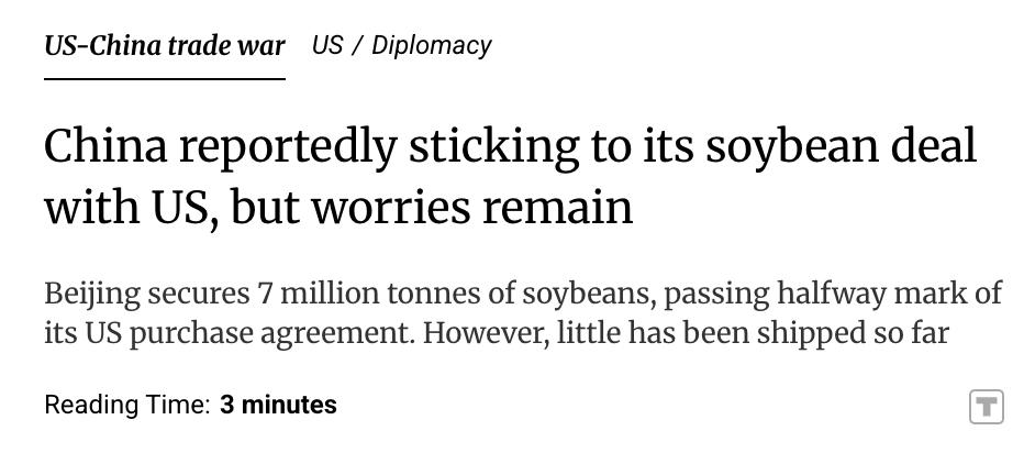 外媒:据美国政府数据和市场惯例,中国已确保超过1200万吨大豆采购承诺中的一半以上,即约700万吨,但目前实际发货量很少,引发可能取消订单的担忧。 美国农业部已确认近400万吨大豆销售给中国,另有300万吨处于“未知目的地”类别,这通常是中方为稳定价格采取的惯例操作。 芝加哥的沃尔什交易公司和美国金融服务公司StoneX均表示中国已接近完成600-750万吨的采购,但实际发货量少,仍需关注后续进展。