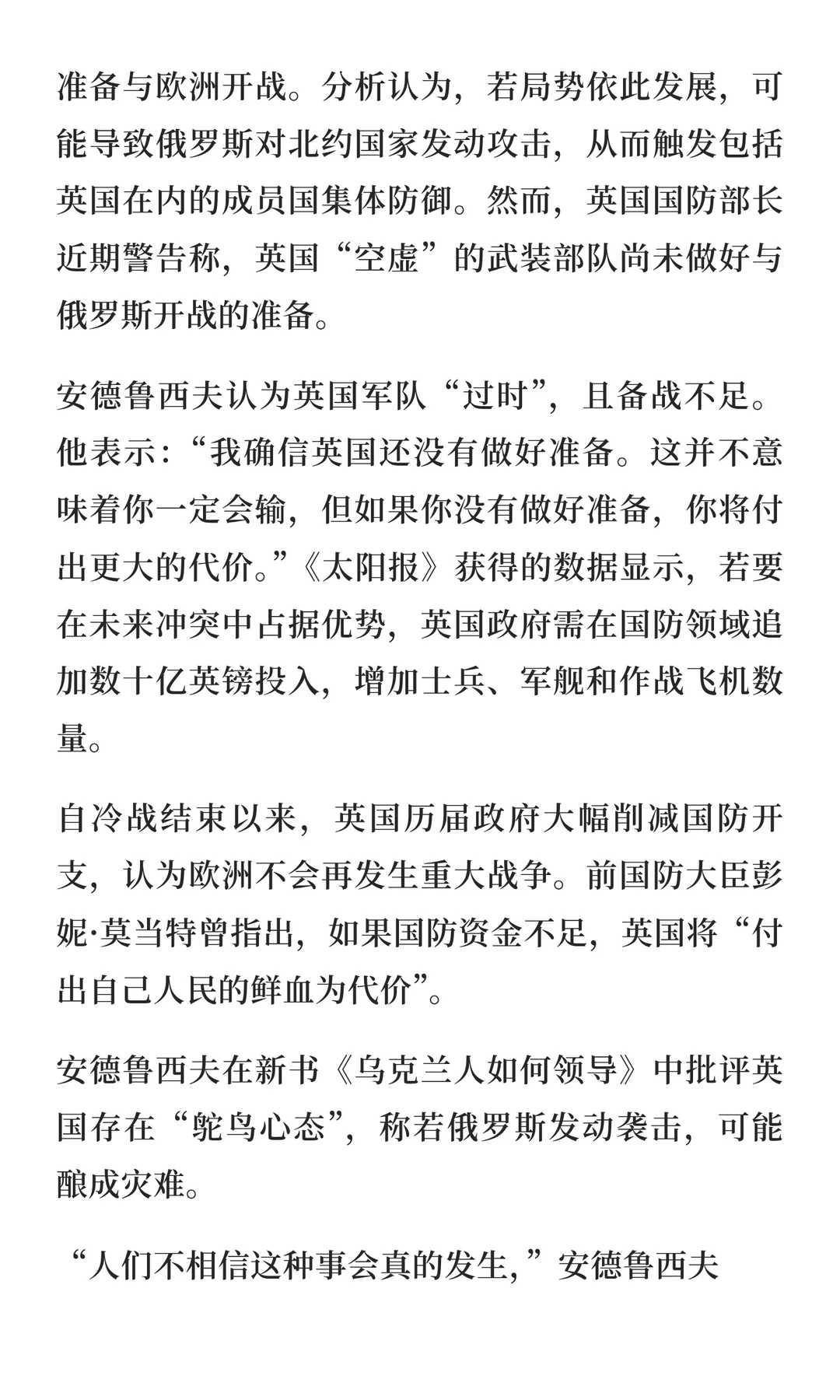 乌克兰前总统顾问:普京进攻欧洲英国将付出