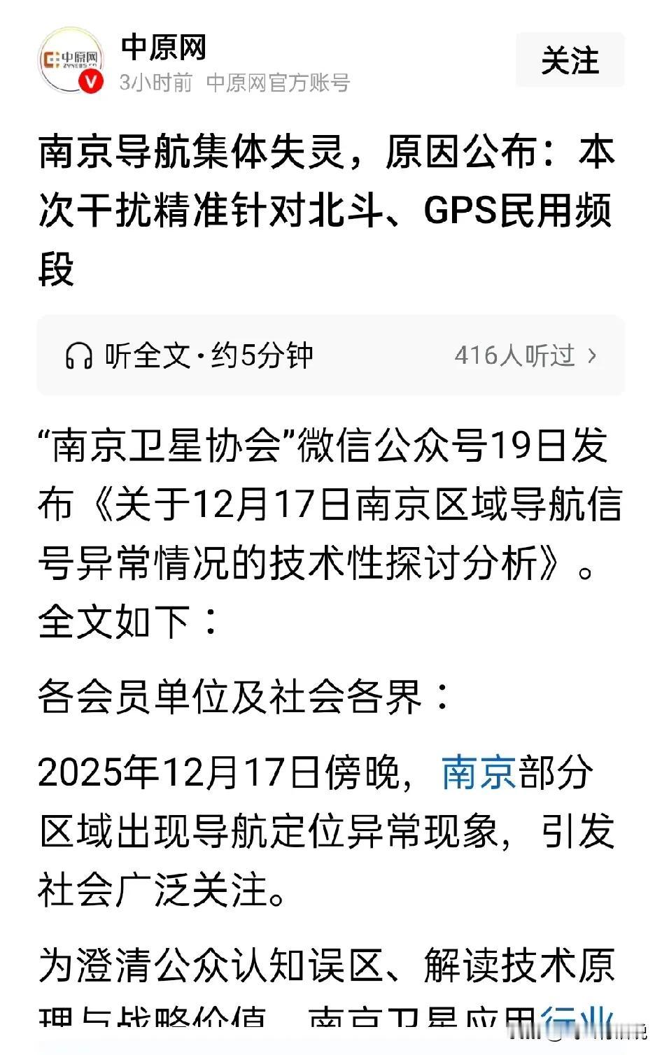 导航都可以被干扰,这技术也太让人牛了 只不过是如今民众对导航依赖性很强,导航被干扰,会让好多人被耽误事情 无论是什么原因,不发通告就干扰导航,也干扰了大家的生活,似乎不应该 技术牛,要有针对性,最好不影响普通人的生活最好