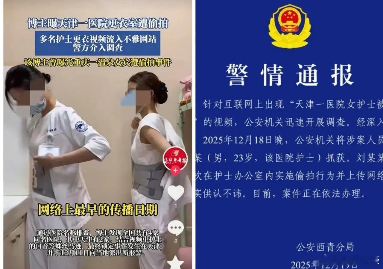 果然是熟人作案!天津某医院护士更衣室内被偷拍这件事有结果了,嫌疑人已经被抓获,是该院的一名男护士,年龄才23岁。这名男护士已经承认了,自己曾经多次在办公室、更衣室偷拍别人换衣服,并把视频发到某网站上!其实,被发现有人偷拍时,很容易就能想到极有可能是内部人干的,因为这些地方外人一般进不去。这名男护士今年才23岁,估计也是刚毕业不久便进入了护士队伍,在医院里男护士比较少,相对还是比较吃香的!不好好干事业,非要搞这些乱七八糟的,世上没有后悔药,等待他的将是严厉的处罚,不但正式工作可能丢了,还有可能被px!偷拍他人照片
