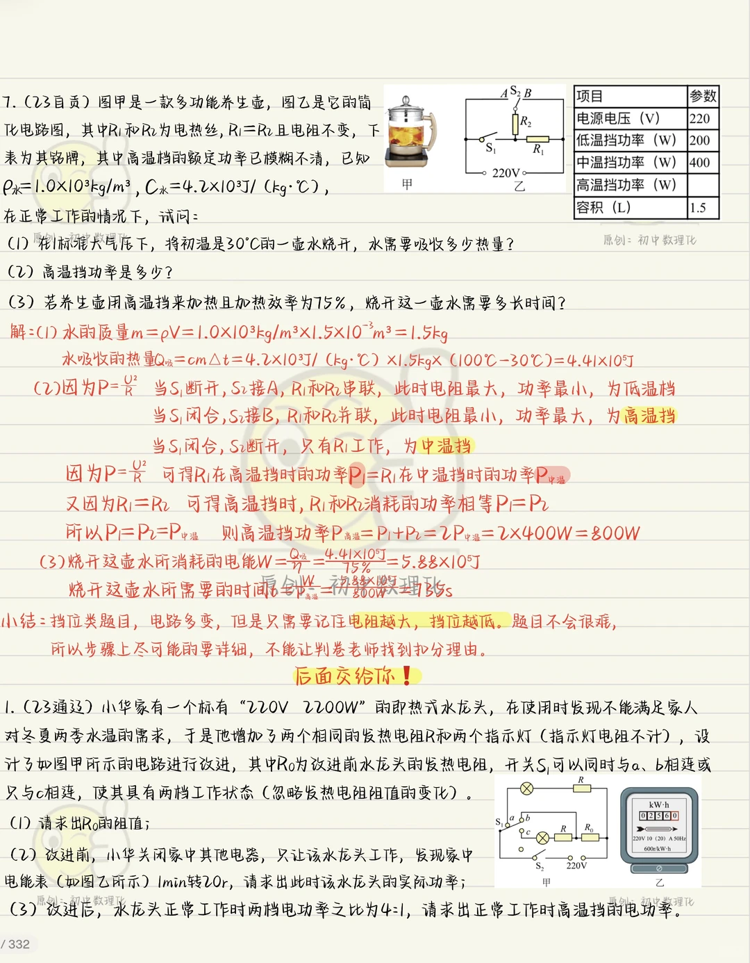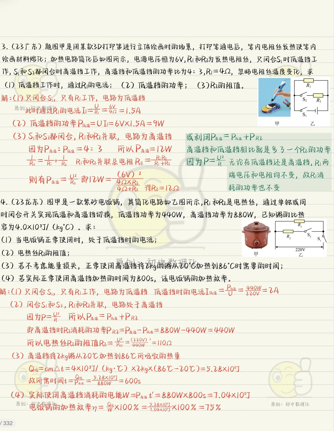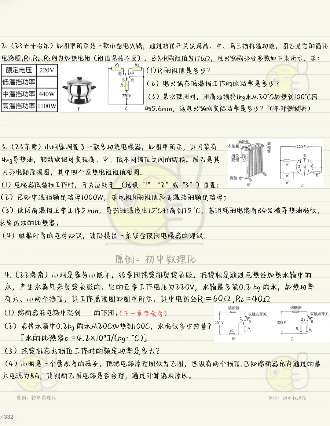 电功率挡位 电学初三物理重难点 欧姆定律串并联