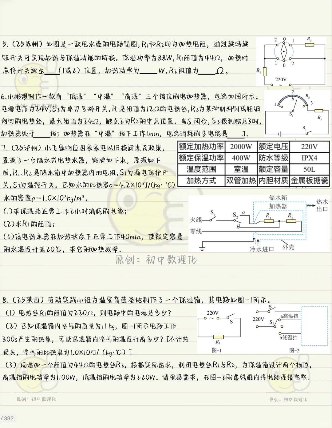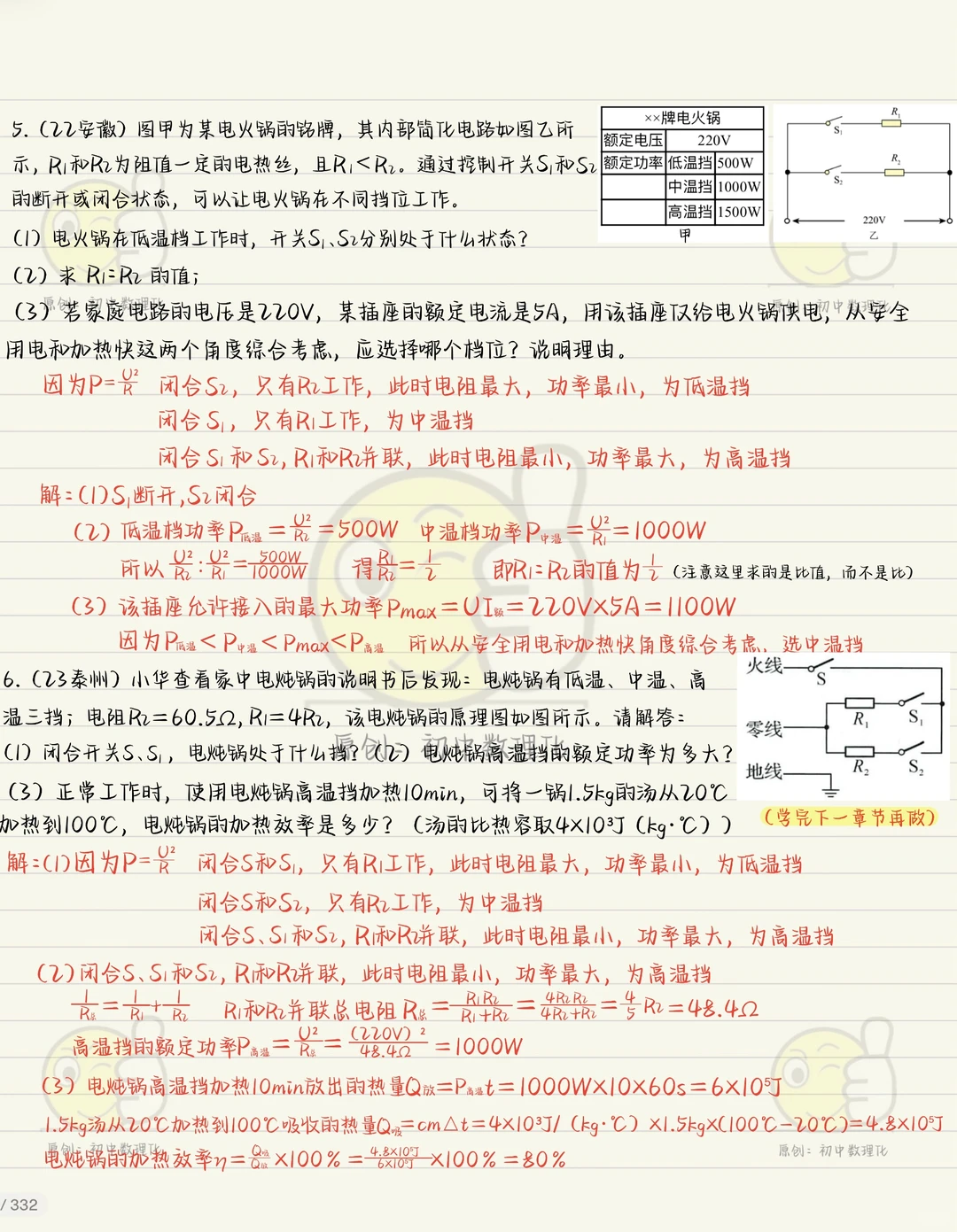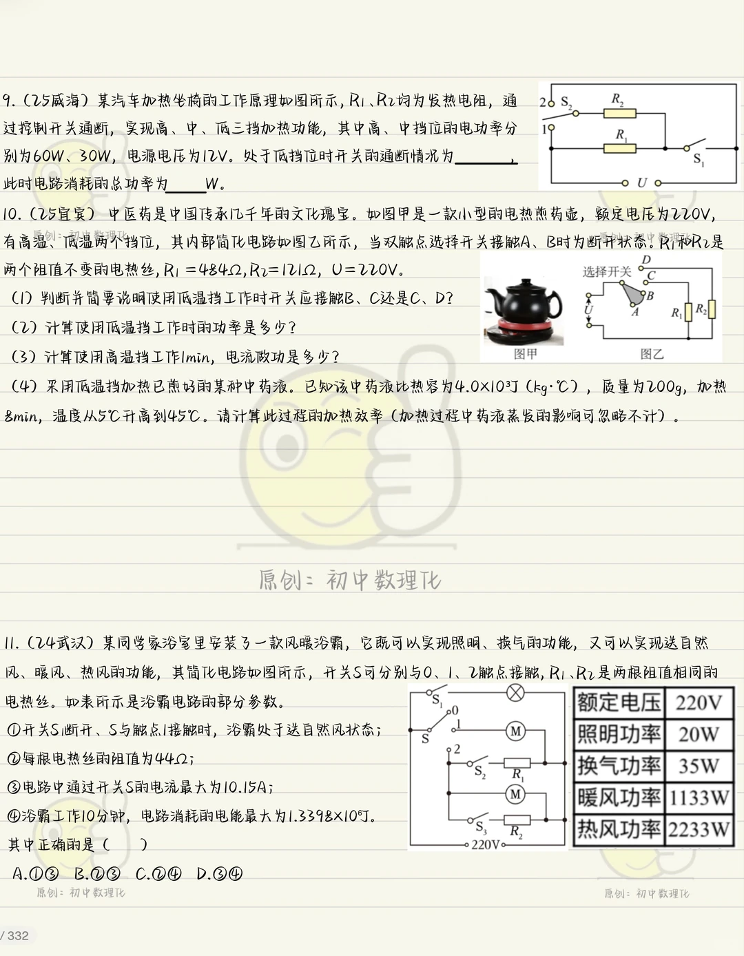 电功率挡位 电学初三物理重难点 欧姆定律串并联