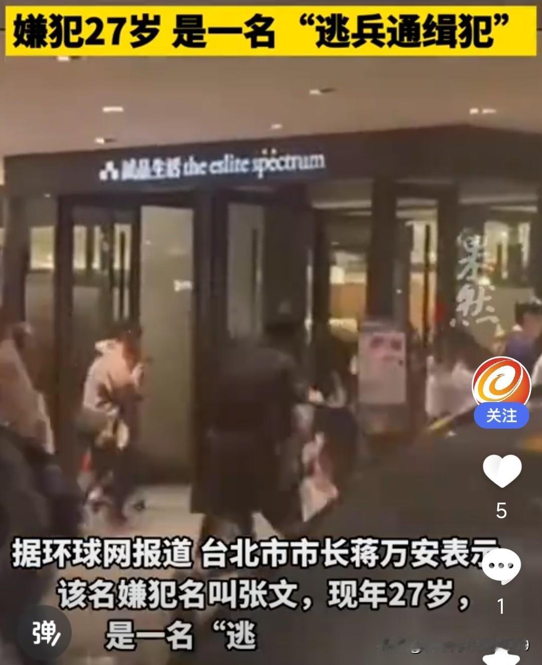 太恐怖了!台北车站发生随机砍人事件,一男子戴着防毒面具,先扔烟雾弹,随后拿出长刀随机砍人,最后自己跳楼身亡。目前已造成四死五伤。据说该男子姓张,因逃避服兵役被通缉。 据说就在几天前,还有人在网上说羡慕该车站“没有安检”,这下终于知道,在“便利”和“安全”之间该如何选择了吧? (图片来自网络视频截图)