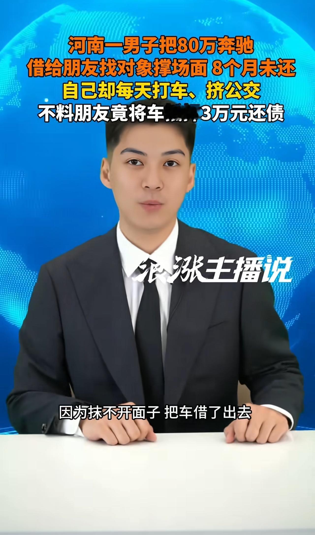家人们,这事儿看完真能气到拍大腿!河南一位大哥,好心把价值80万的奔驰借给朋友,说是帮着找对象撑场面,结果呢?车一借出去就像石沉大海,整整8个月要不回来。自己反倒天天挤公交、打出租,日子过得那叫一个憋屈。 更让人心梗的是,等大哥好不容易找到朋友,才发现车早被这“好兄弟”偷偷抵押了3万块,拿去还债了!80万的车换3万,这操作简直是把“朋友情谊”按在地上摩擦啊! 网友看完都炸了:这哪是借车,分明是借了个“祖宗”!还有人说,东郭先生救狼,好歹知道对方是狼,这位大哥怕是连朋友的底细都没摸清就掏心掏肺了。这年头,“烂好人”真不能当,好心借车是情分,可对方得有基本的底线吧? 说到底,亲兄弟还得明算账,贵重东西借出去前,真得掂量掂量——对方值不值得你冒险,自己能不能承担最坏的结果。不然就像这位大哥,好心办了糟心事,车要不回来不说,还得跟人扯官司,图啥呢? 宝子们,你们有没有过类似的“好心被坑”经历?快来评论区吐槽避雷~ 😉亲戚借车纠纷 奔驰爱情骗局 奔驰买车纠纷 奇葩借车经历 河南借车