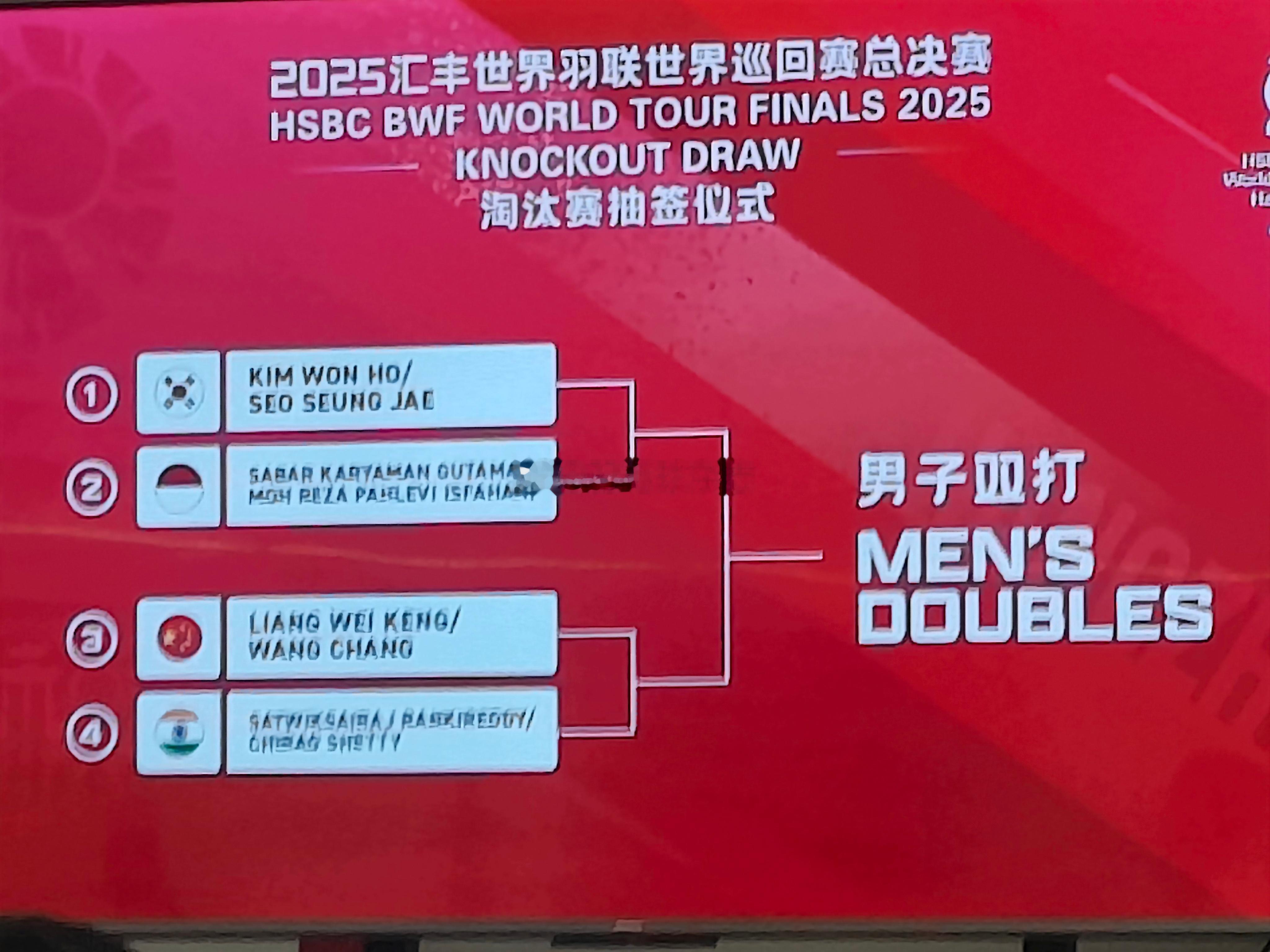男双四强对阵梁王半决赛再战印度组合2025年世界羽联年终总决赛