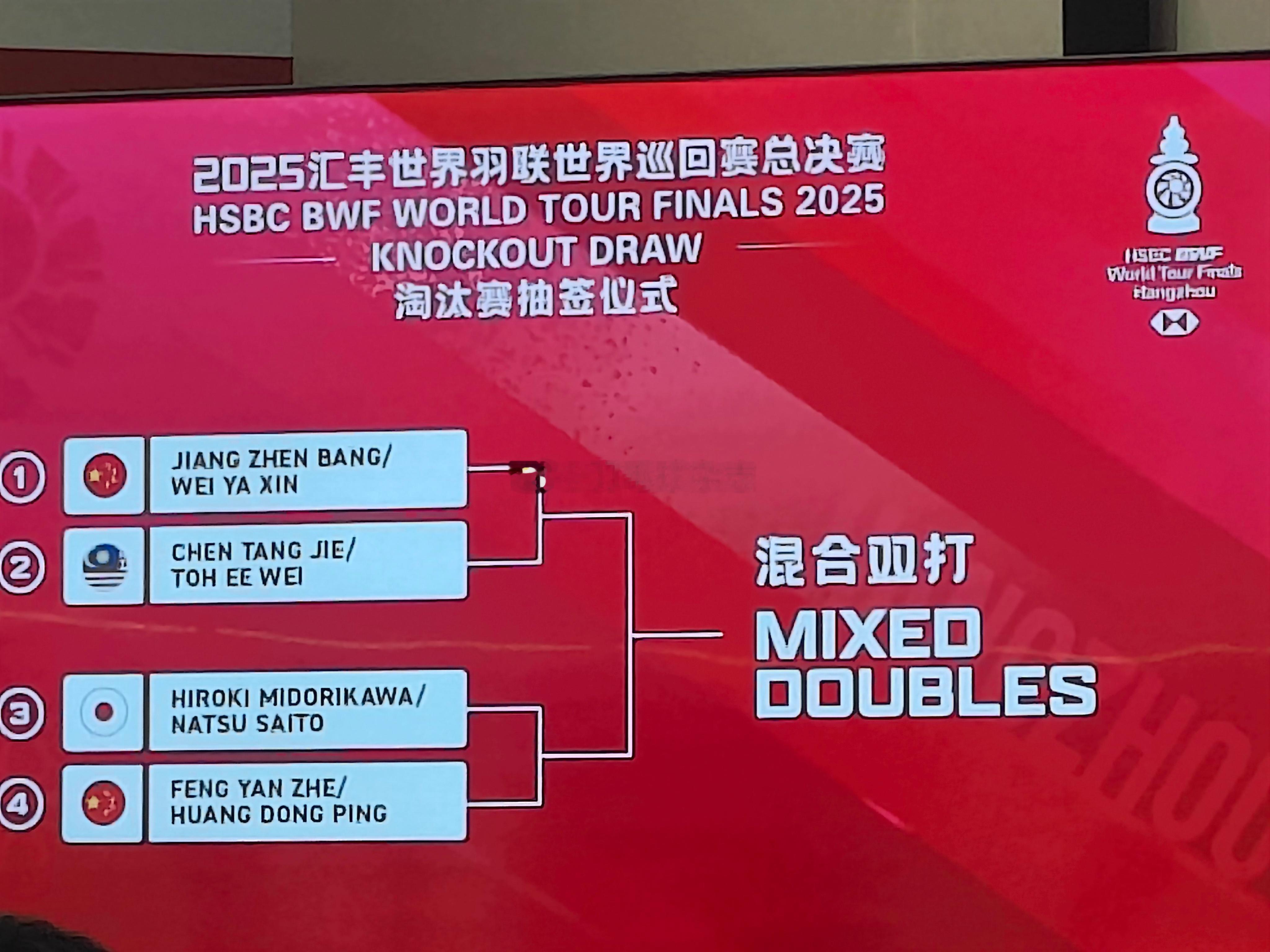 混双四强对阵2025年世界羽联年终总决赛