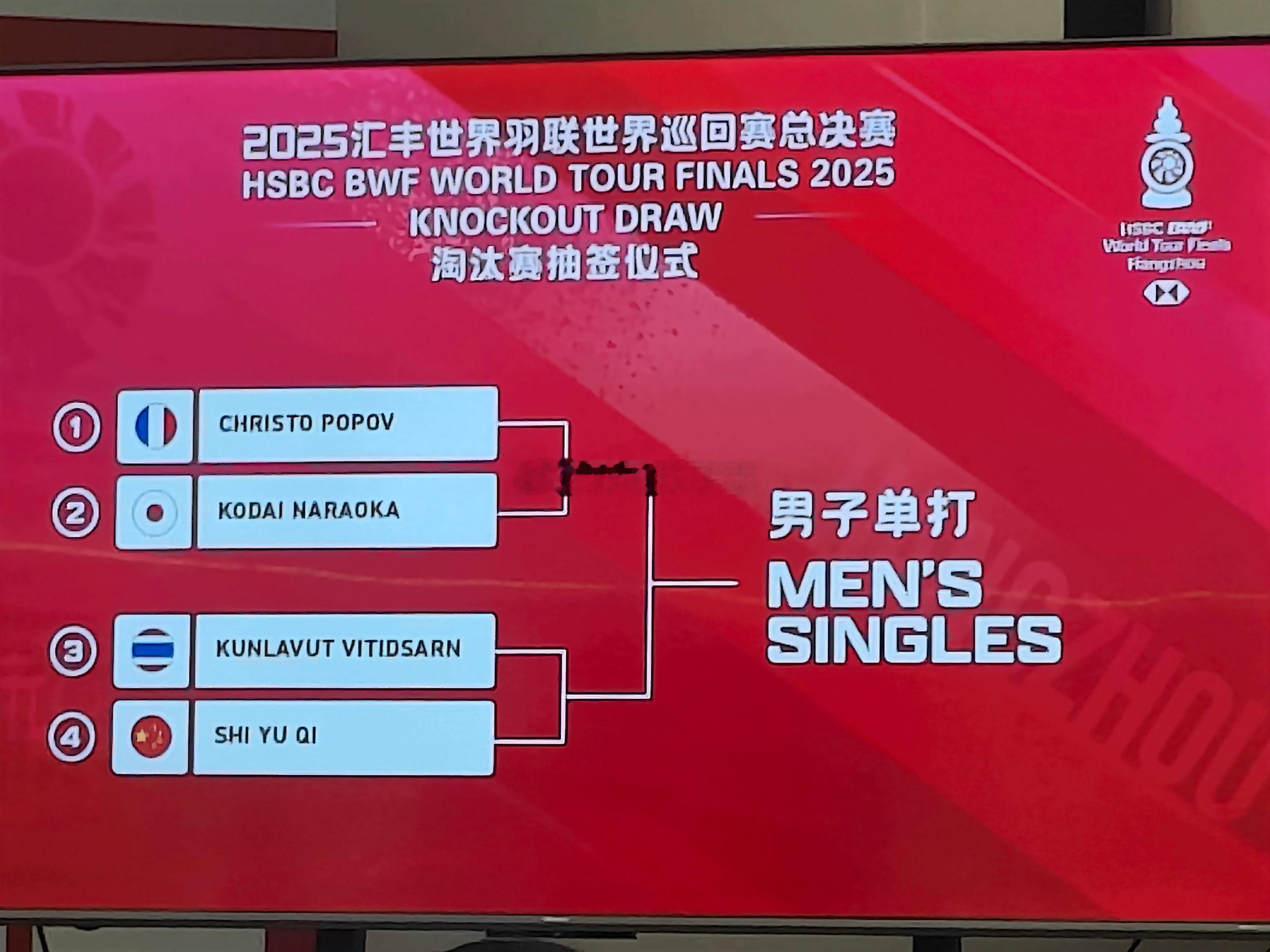 总决赛四强完整对阵明天(今天)早上见!第一场和第二场将是女单2025年世界羽联年