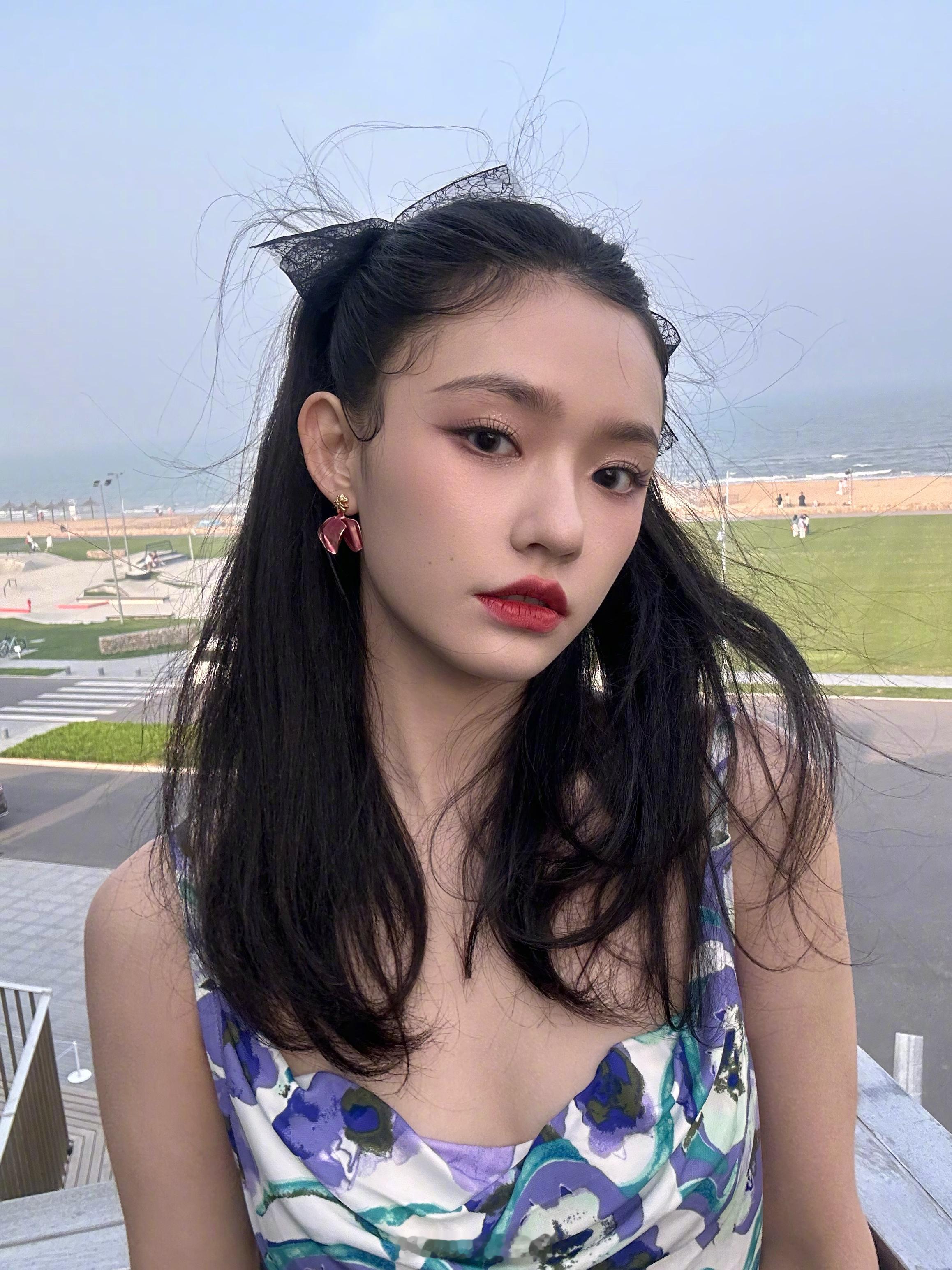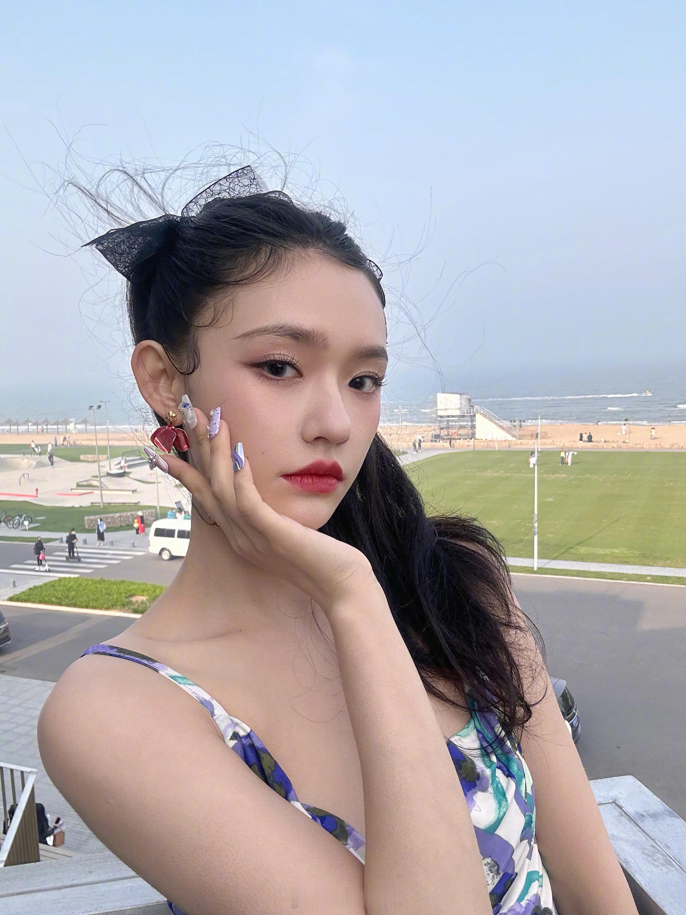 刘亦菲十七八岁时在海边游玩留下的一组照片,肚子上好多肉肉啊!