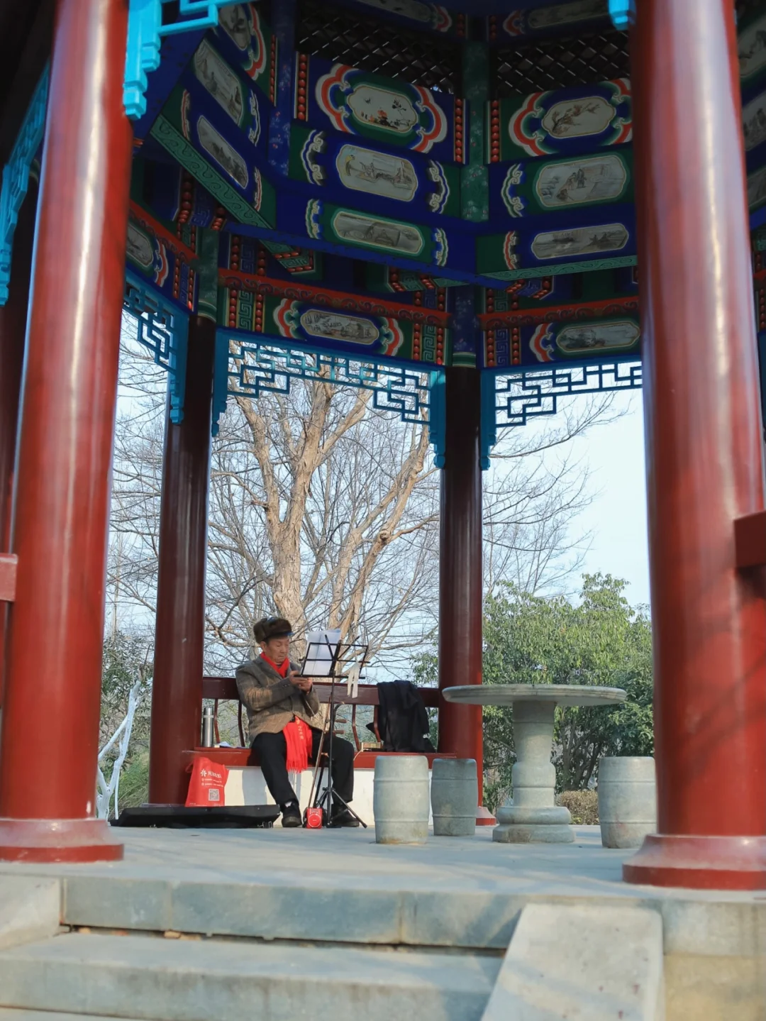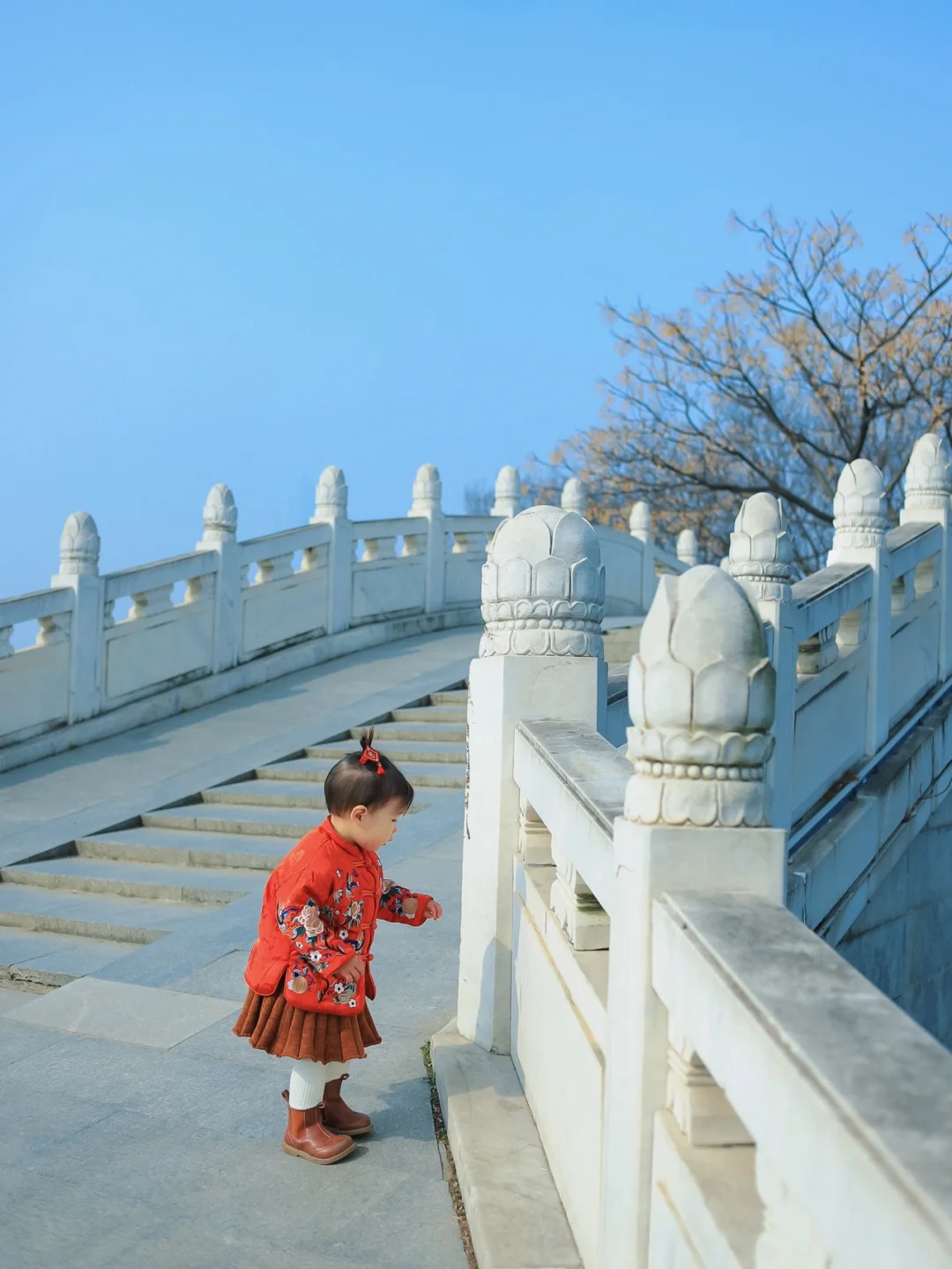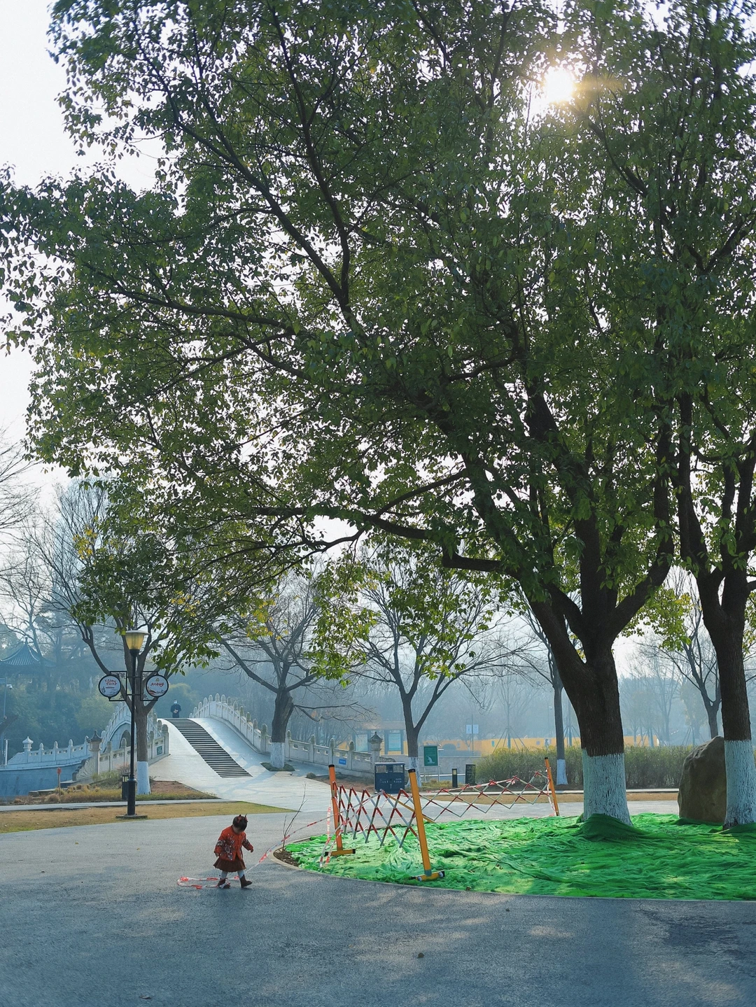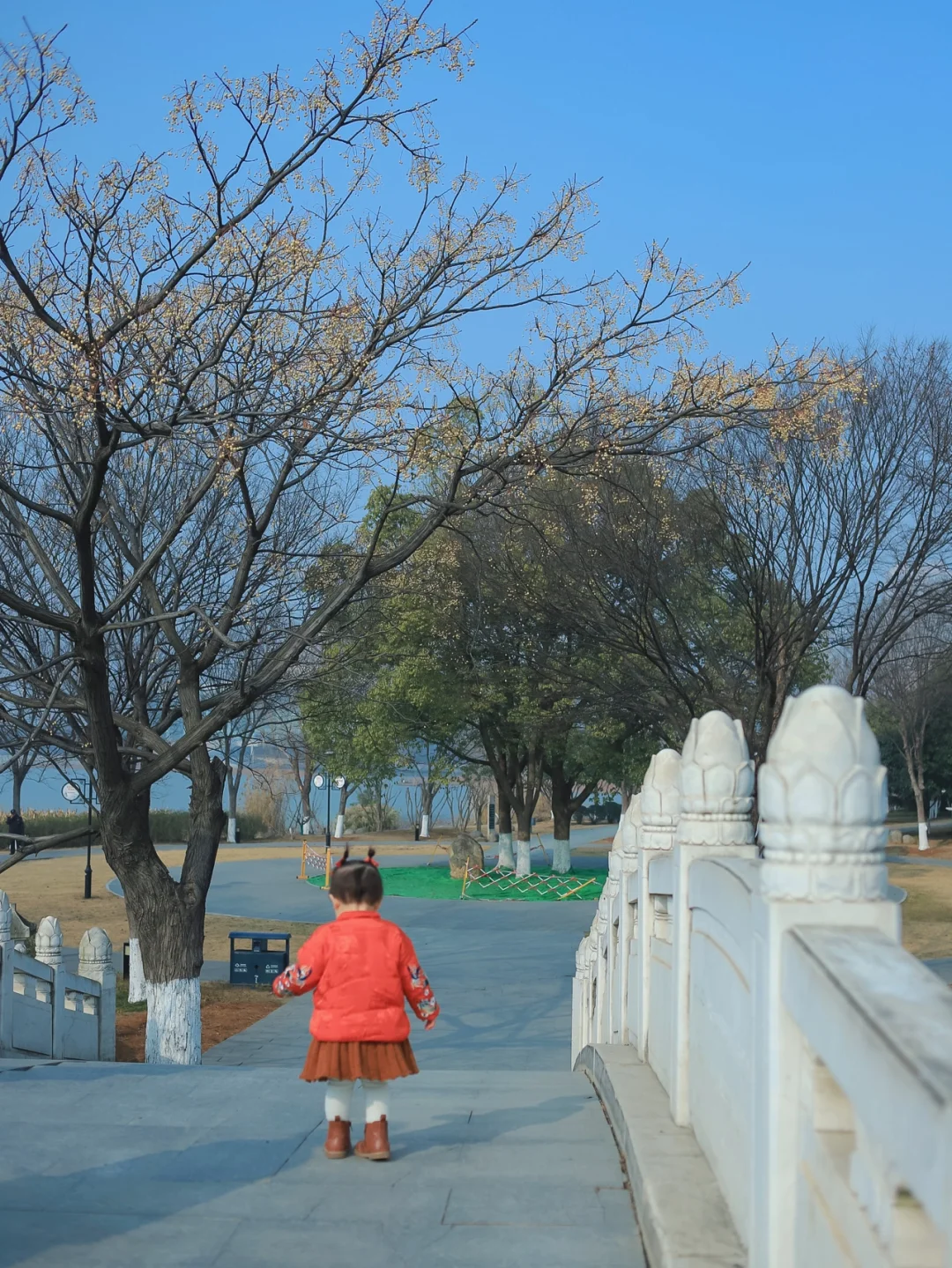 我们是从南门进去的,都说景点集中在南边,但是我被东边的一个超大的槐树跟一个拱桥吸引了!刚好小星星今天穿的中国风的年服🧧🧨在拱桥那里给她抓拍了几张,居然拍出了故宫的感觉,哈哈哈~