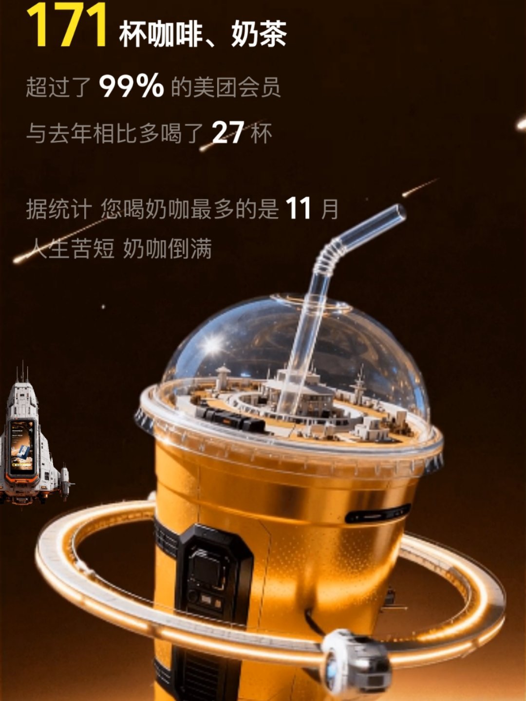 年度报告这应该不算多吧,怎么就超越了99%的人,咖啡很多都是在小程序你直接下单,感觉甜品吃多了