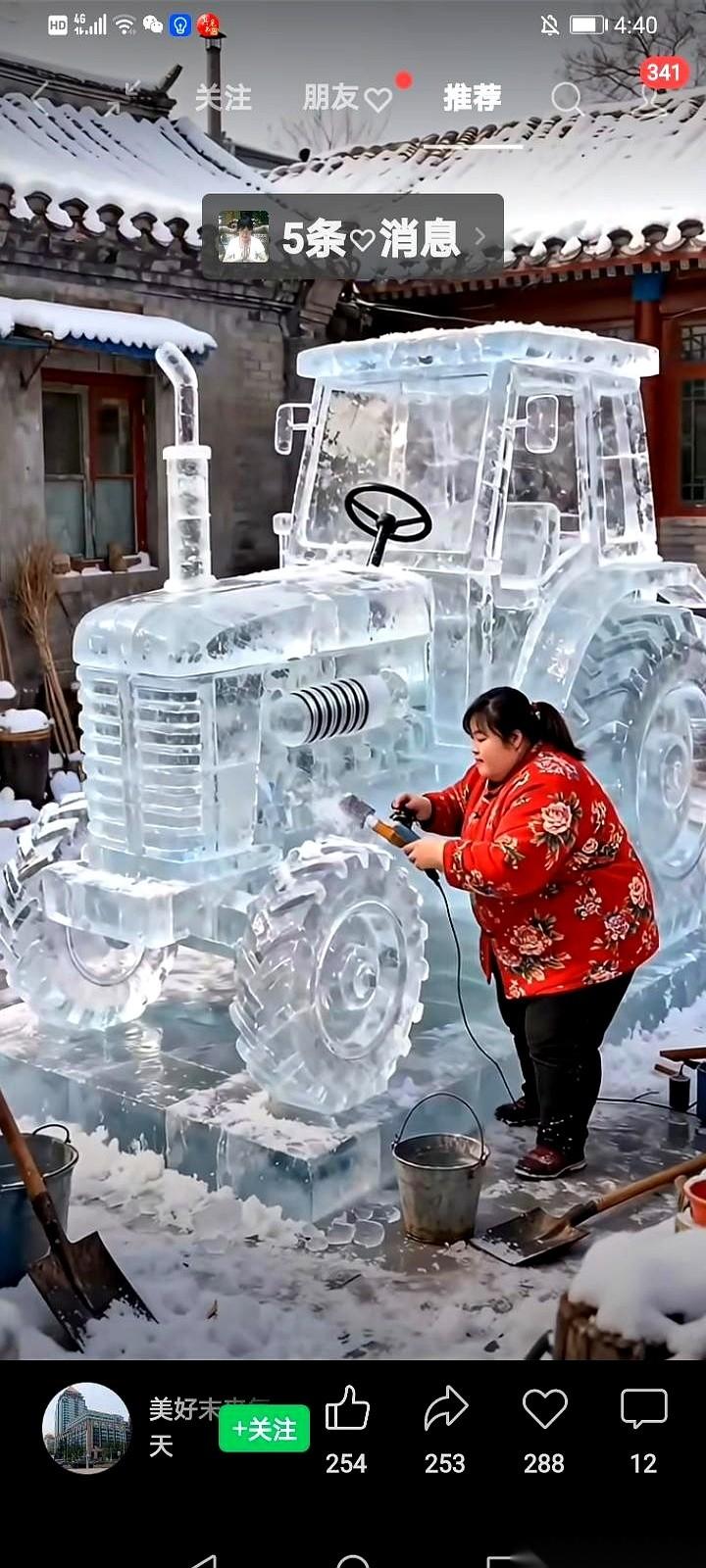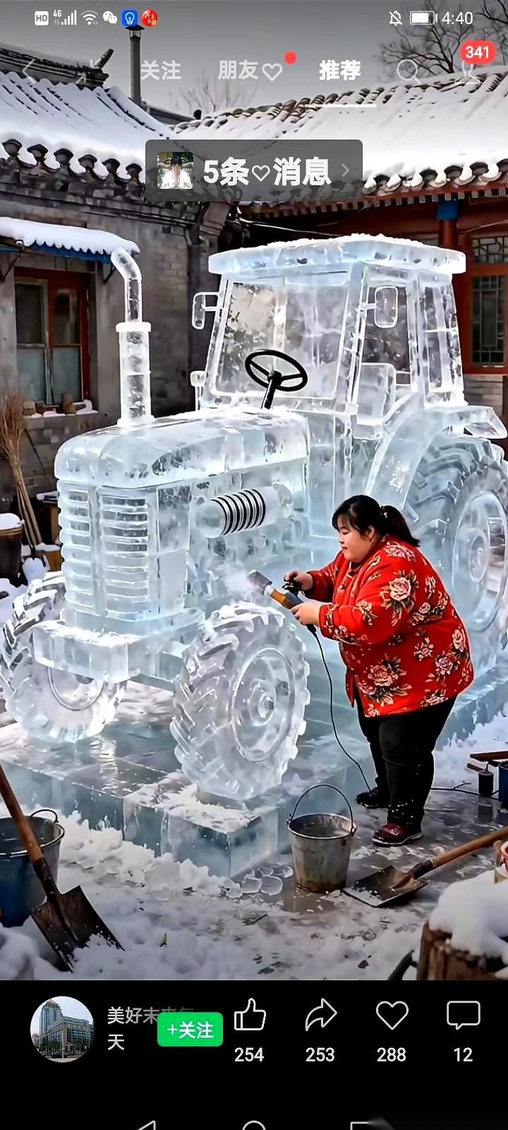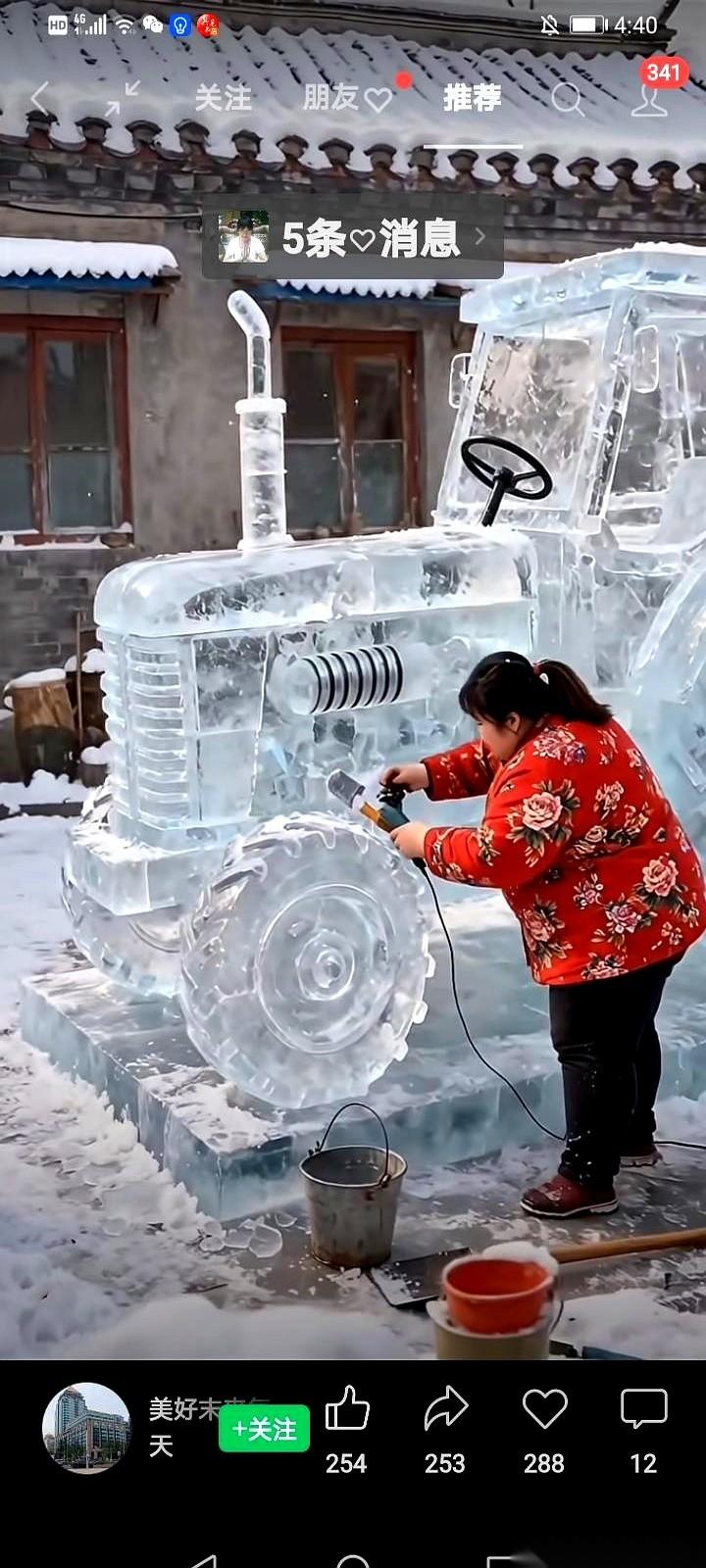 真的,有时候我真会被一些评论气笑。 人家姑娘大冷天的,在外面用冰块,一刀一刀,给你凿出个拖拉机头来。 多牛逼啊!那叫手艺,那叫热爱。 结果大哥你来一句:“方向盘放机盖上怎么开?” 怎么开? 我的天,你是不是以为她下一步就要加满油,直接开去参加春耕大赛啊? 这是艺术品,是创造,是零下十几度里开出的浪漫的花。 它唯一的用途,就是被欣赏,被赞叹。 可总有人,非要用说明书的眼光去看一首诗。 你给他看蒙娜丽莎,他问你这女的背景调查做了没;你给他看大卫,他问这小伙子穿这么少冷不冷。 这种人吧,不是蠢,就是纯粹的坏。 他们享受的不是美,而是指出“瑕疵”时,那一瞬间自以为是的优越感。 说白了,你给他看月亮,他永远只看得见你那根指月亮的手指头。 格局,就这么点儿。
