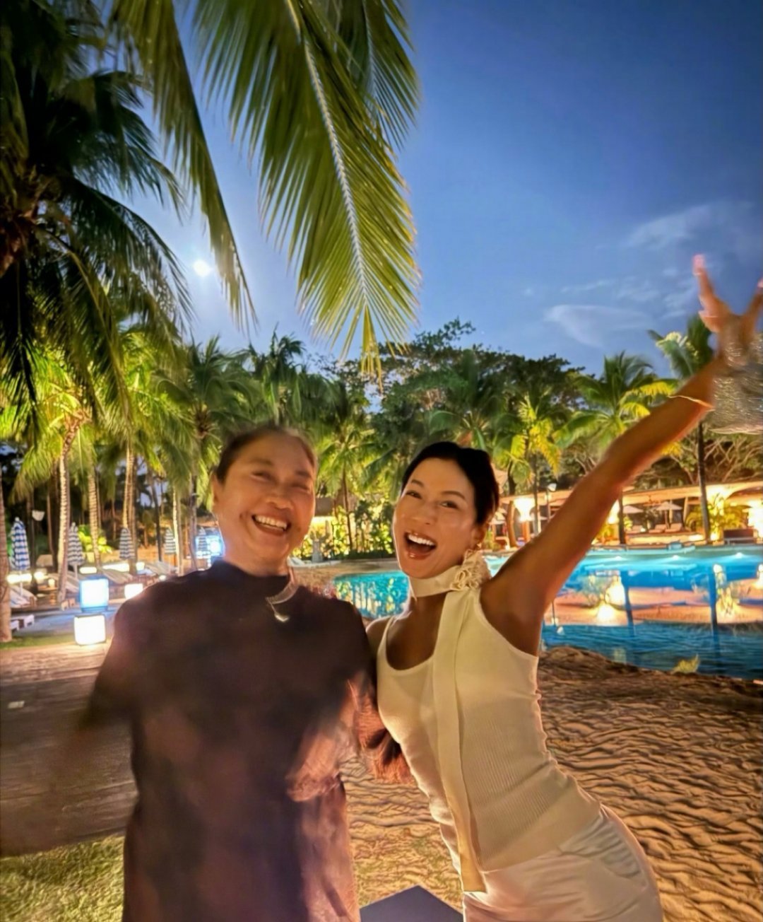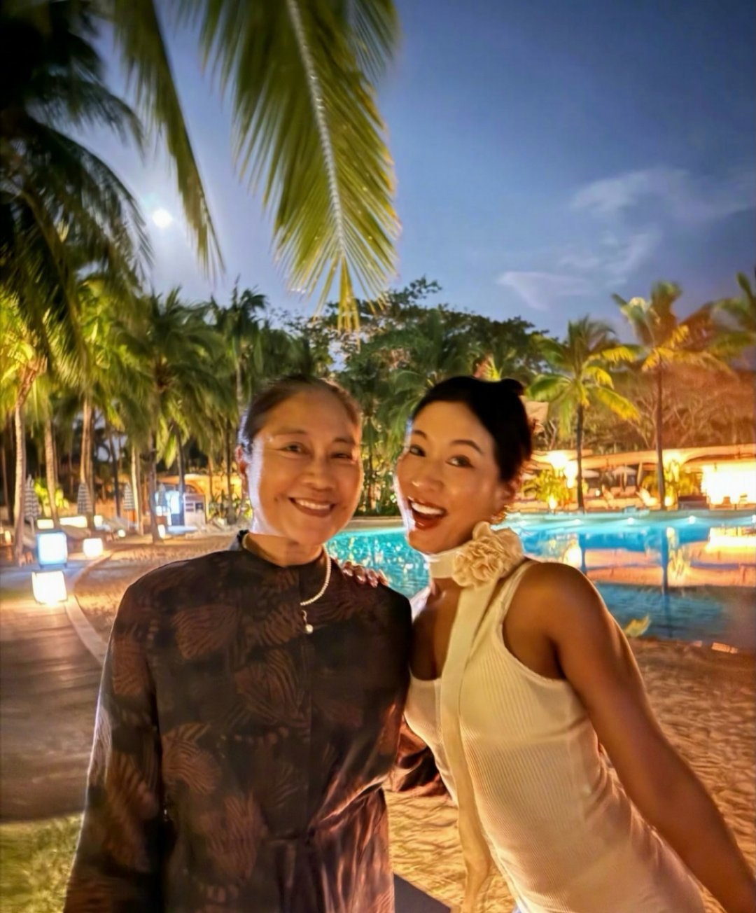 吉克隽逸和妈妈游玩照,母女俩虽然都是大黑皮,但颜值是真的很高,五官长得挺好看。