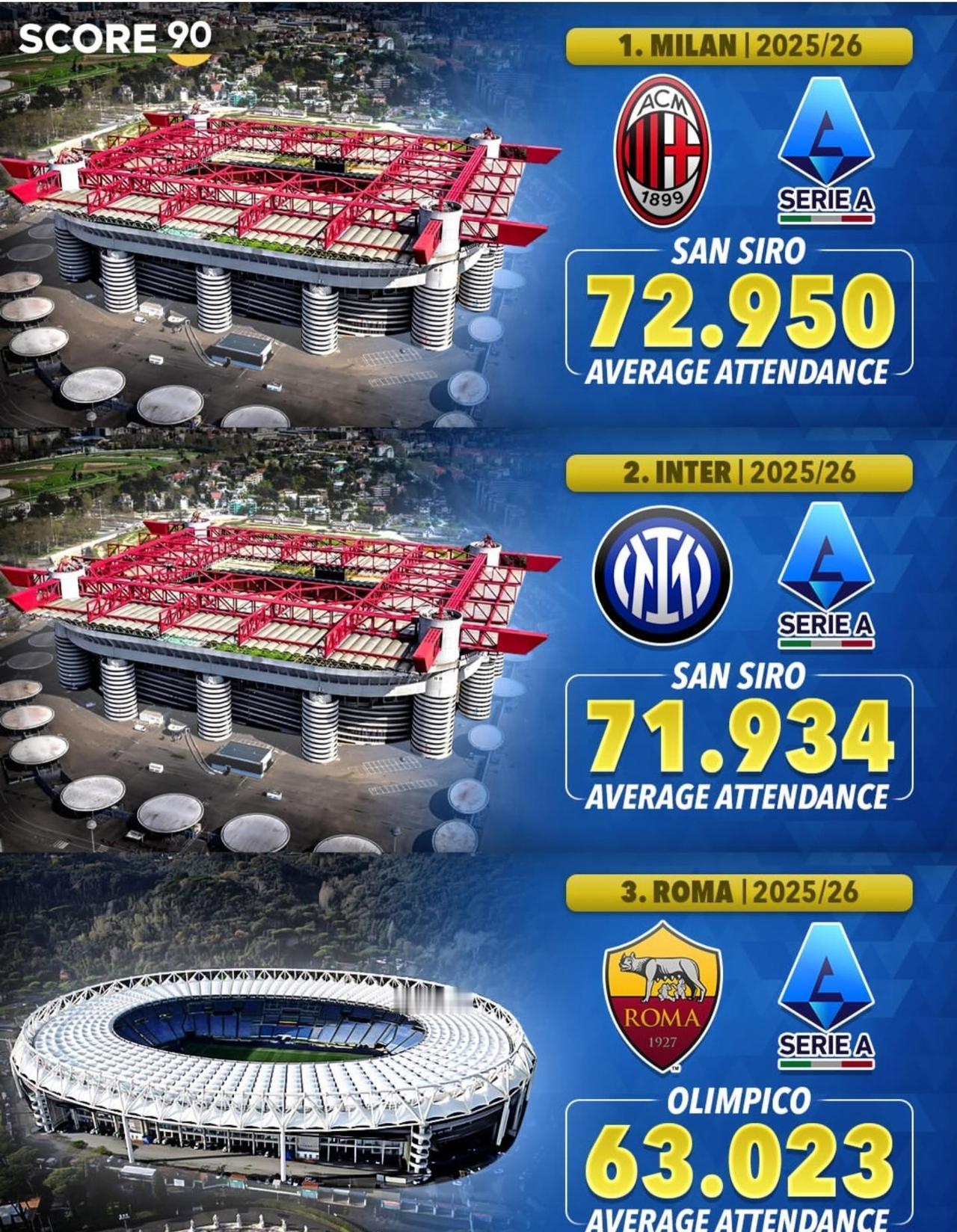 同一个球场AC米兰上座率比国际米兰高! Ac米兰场均7.2万球迷单场看球,意甲第一。 国际米兰场均7.1万球迷,意甲第二。 罗马6.3万,意甲第三。 我认为本赛季米兰成绩出色,上赛季可是意甲第九名,球迷感觉良好纷纷看球。 总体上两个米兰还是不相上下。[得意]
